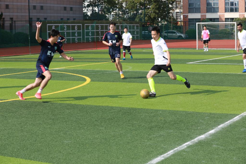 全校96名教职工组成的8支队伍参加了比赛。大家走下讲台,换上球服,走进绿茵场,秉持“友谊第一,比赛第二”的原则,上演了一场又一场精彩对决。进攻、压上、回防,台下的教练员运筹帷幄,精心排兵布阵;抢断、盘带、过人、射门……前锋机敏活跃,后卫精准拦截,守门员严密防守,队员们各司其职,密切配合,奋力拼搏,引来场下观众阵阵喝彩!