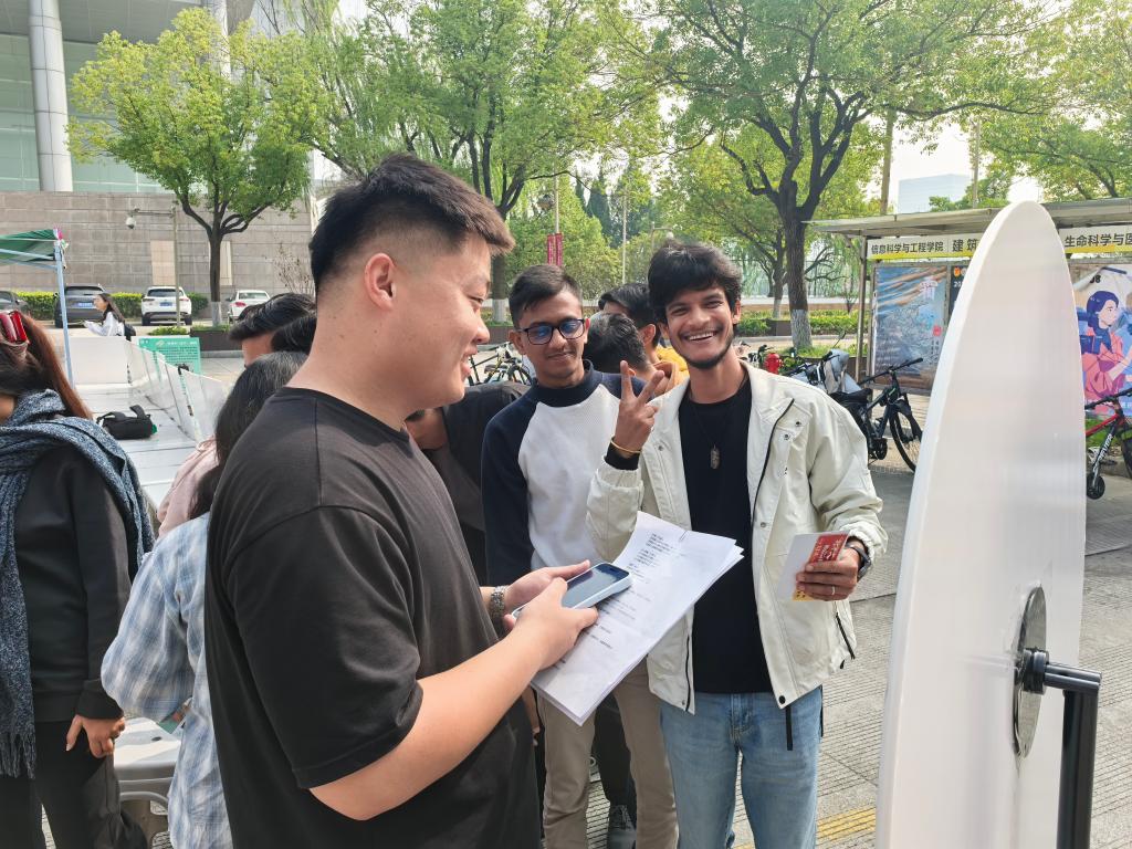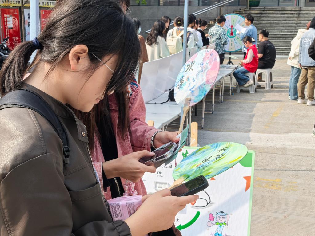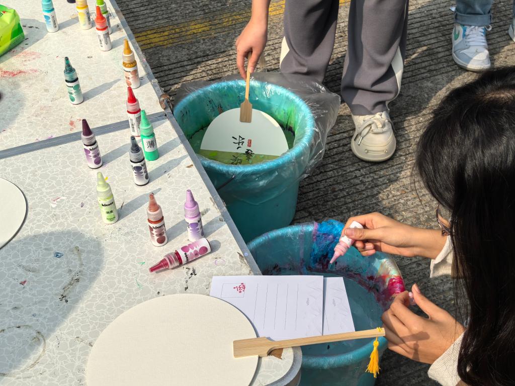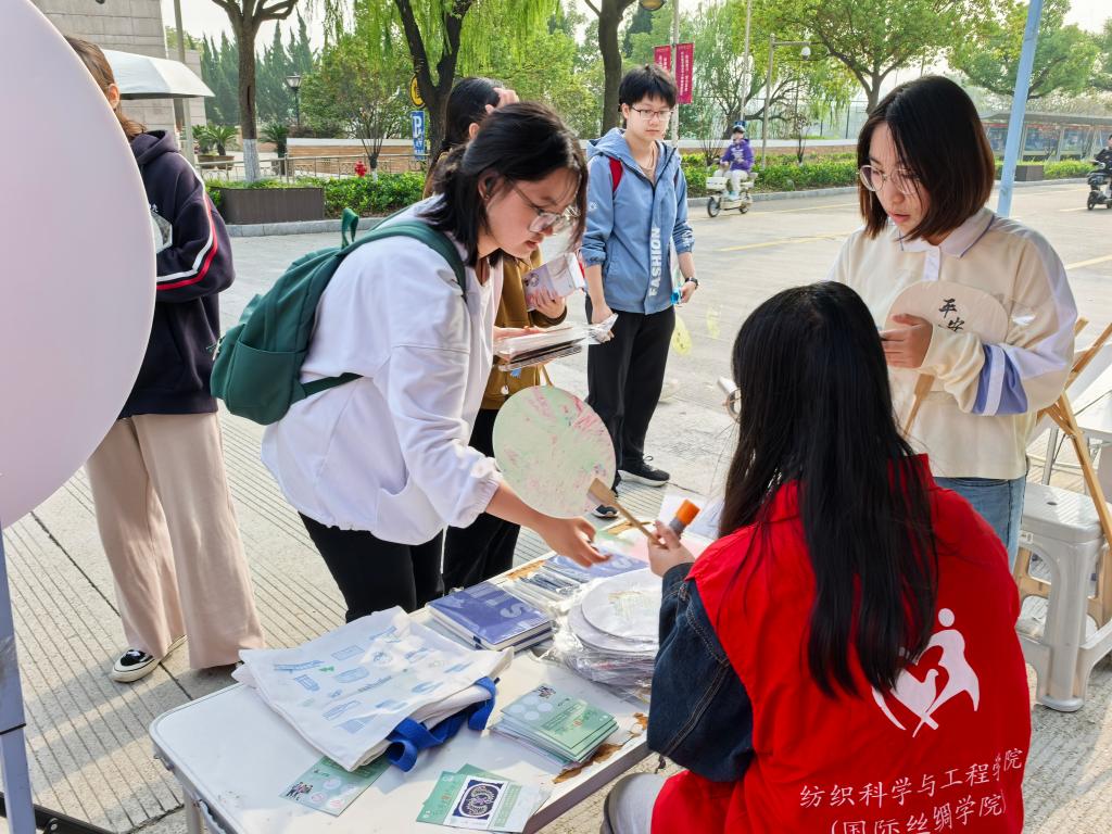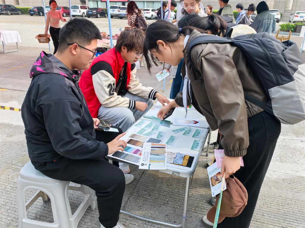 本次非遗文化“嘉年华”现场更是精彩纷呈,共设置了四大“打卡”环节——走进家乡非遗展、漆扇制作工坊体验、丝物连连看知识竞赛以及AI生成“丝”享头像等趣味活动。同学们不仅可以近距离观赏各种非遗绣法的独特魅力,还能亲手体验非遗漆扇传统工艺的现代演绎。通过辨认各类布料、了解材质特性以及获取面料纺织小知识等互动环节,同学们对纺织文化有了更加深入地了解。最后,利用最新的人工智能技术,还可以生成专属于自己的“丝”享头像,感受科技与文化的完美融合。