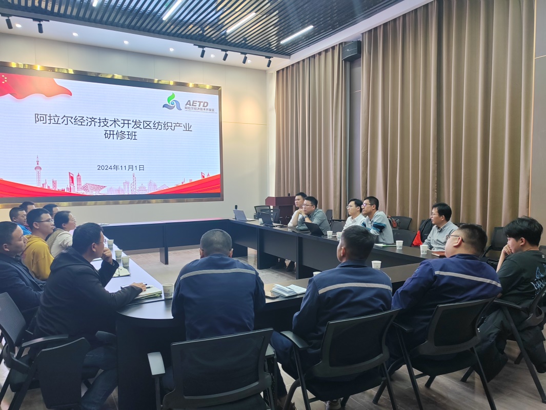 本次特派团成员包括梅胜军、刘国金、朱斐超、余德游、王成龙、马雷雷、马明波,以及纺织科学与工程专业的博士生何铠君(嘉兴南湖学院教师)。在兵团第一师(阿拉尔市)科技局和阿拉尔经济技术开发区的邀请下,特派团于11月1日成功举办纺织产业技术提升和转型升级研修班(第一期)。该研修班旨在提高师市纺织行业中高级人员的管理水平、研发能力和创新能力,促进纺织服装产业的高质量发展。活动吸引了当地二十余家龙头纺织企业的积极参与。
