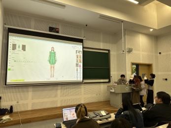 钟超简要介绍LOOK AI工具的核心功能和在实际操作中的优势后,结合实际案例,在互动环节中进行了LOOK AI工具创新设计演示,全体师生不仅亲眼见证了AI技术在服装设计领域的应用,还亲身体验了数智带来的便捷性和高效性。现场气氛活跃,反响热烈。学生表示,通过这次讲座,他们对AI技术的应用有了更直观的认识,也对未来的设计工作充满期待。互动环节不仅展示了AI技术的魅力,也为教育领域和数智技术的融合提供了宝贵的实践经验。