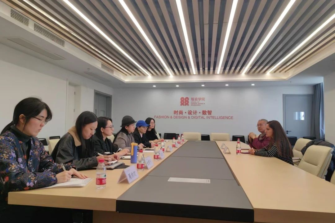 须院长介绍了今年服装学院代表团前往法国巴黎开展服装发布秀,传播中国传统文化和时尚艺术创新表达的相关情况,得到国内、国际友人的广泛关注;并进一步围绕服装学院四个国一流专业(服装设计与工程、服装与服饰设计、艺术与科技、时装表演艺术)设置情况、科研平台支撑、优势产业资源集群、地方研究院深耕和相关民族服饰文化传播交流活动,阐述了服装学院在国际交流、产业合作等方面所做的努力和取得的成绩,提出希望未来双方加强沟通协作,梳理合作框架,为中意国际时尚交流与互动架起桥梁。会后,相关专业老师与玛丽亚·费拉拉女士进一步交换了想法和意见。