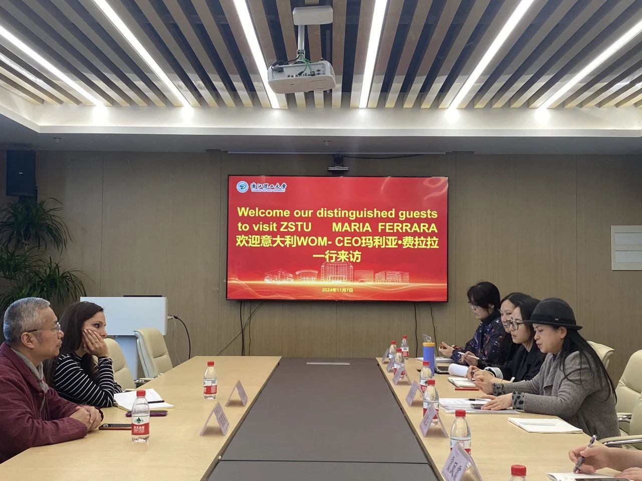 11月7日,意大利WOM-CEO Maria Ferrara(玛利亚·费拉拉)女士及商务顾问(文旅、经济、教育)张忠国老师一行访问服装学院,展开了一场别开生面的深度国际交流活动。服装学院院长崔荣荣、副院长须秋洁对玛丽亚·费拉拉一行的来访表示诚挚欢迎,并提出期待未来双方在中意时尚教育、时尚产业发展和时尚资源匹配等方面深入谋划,促进双方国际交流与合作关系的深度开展。