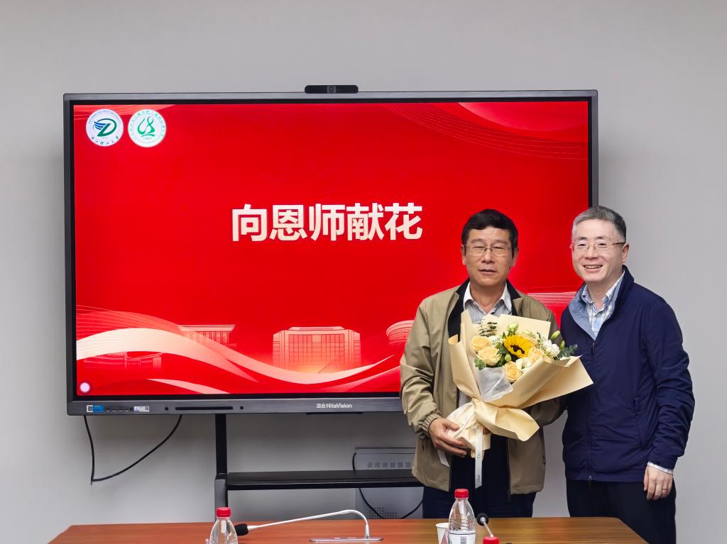 原材料与纺织学院91染整(1)班班主任姜坪对杨积林校友的捐赠表示感谢,分享杨积林在求学期间发生的“趣闻”。随后,杨积林以赠送鲜花方式表达对恩师的感谢。