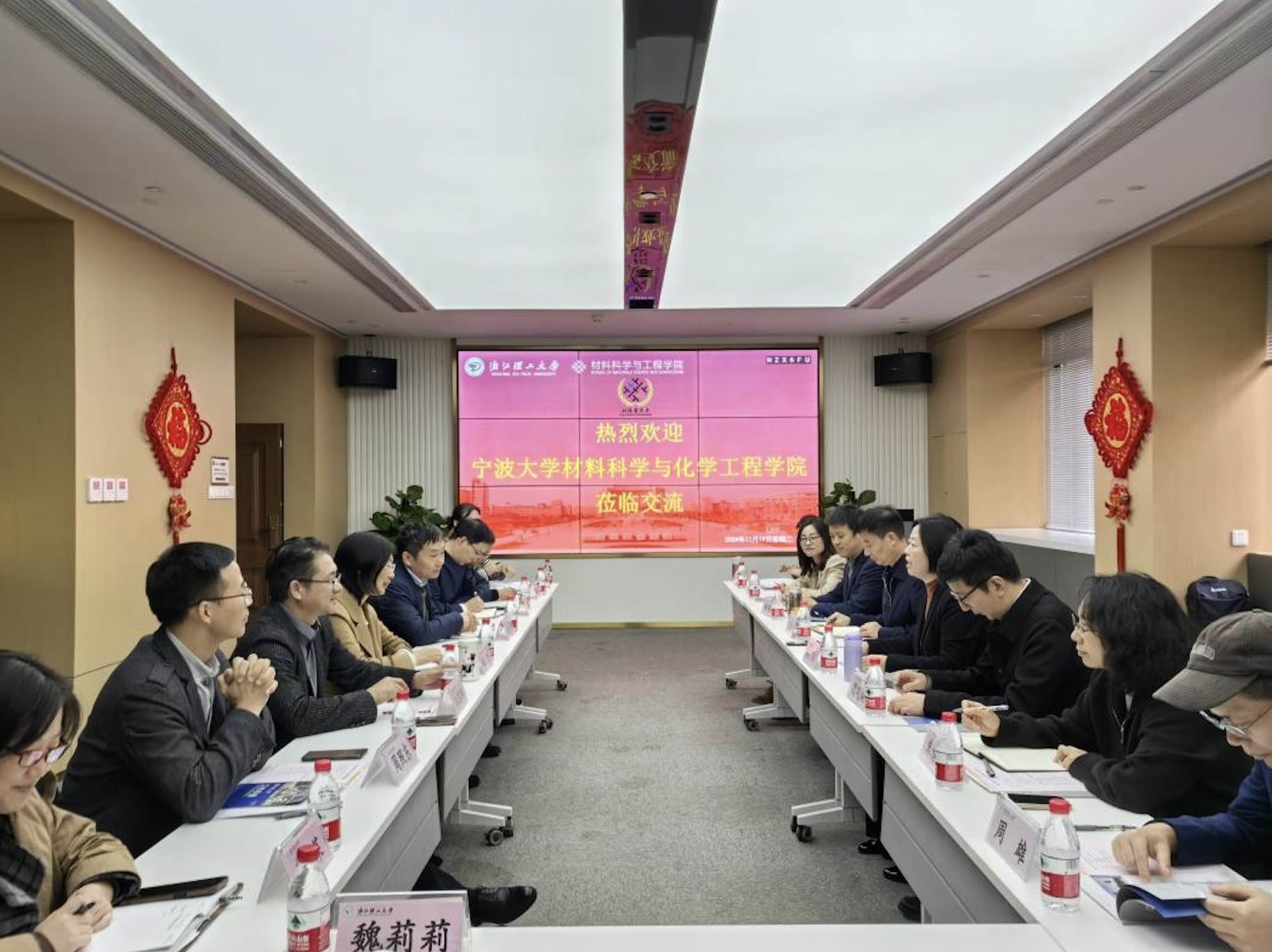 11月19日上午,宁波大学材料科学与化学工程学院全体领导班子成员在党委书记陶娟、院长丁传凡带领下到mk官方网站_mk(中国)材料科学与工程学院开展调研交流。学院党委书记仰滢,院长张先明带领班子成员参加调研交流。
