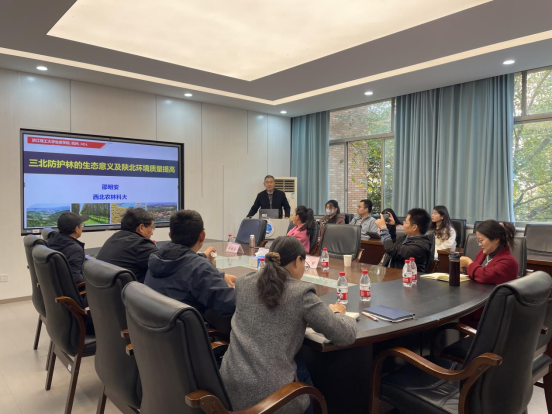 报告会由梁宗锁主持,生命科学与医药学院部分骨干教师及学生参加了此次报告会。梁宗锁简要介绍了邵明安院士的研究方向和学术成果,并对他的到来表示热烈欢迎。随后,邵明安院士从三北防护林的建造背景、生态意义、面临的主要问题及陕北环境质量提高等4个方面全面阐述了三北防护林工程相关情况及其对区域生态、经济、社会等方面的影响。