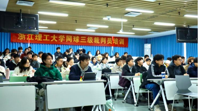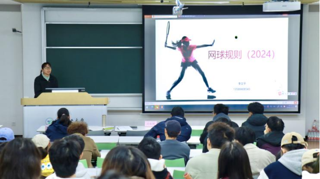 浙江省学校网球协会大学网球分会秘书长马可、我校体军部网球专项负责人李文平、浙江大学城市学院的一级网球裁判员沈彤辉分别围绕“信任制比赛的操作程序”和“网球赛事组织和编排艺术”“网球主裁临场程序”三个主题为学员授课。马老师从运动员、裁判员两个角色出发,融合案例生动形象地介绍了信任制比赛的操作程序;李老师结合自身丰富理论知识储备和实战执裁经验,深入剖析与解读2024年最新的网球规则;沈彤辉老师为学员详细讲述了网球主裁临场程序的理论部分和模拟演练。全体学员亲身体验裁判员临场执裁的各个环节,理解并掌握裁判工作要领,了解一定的临场突发情况的解决办法。