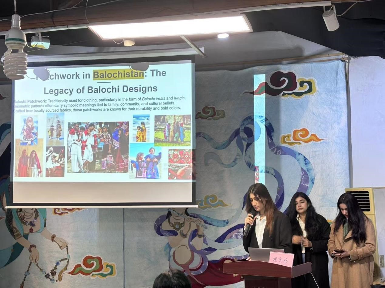 来自巴基斯坦的Ammara um e、Simran Khan和Mahnoor Munir围绕巴基斯坦拼布艺术的多样性和文化意义,向大家展示了巴基斯坦不同省份独特的拼布技术和图案,同时讨论了拼布艺术从传统的功能性用途到现代的时尚和装饰应用的演变,以及购物习惯的代际变化,强调了数字时代如何使拼布艺术更加普及,让年轻人更容易接触和探索不同的设计。