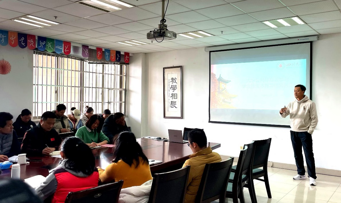 12月18日下午,体育教研部(军训工作部)邀请四川大学体育科学研究所常务副所长、福建省杰出青年科研人才刘鎏教授作题为《推进学生终生体育习惯形成的大学公共体育教学》的培训讲座。部门党委书记惠悲荷、副主任邹学芝及全体教师出席培训会。会议由邹学芝主持。