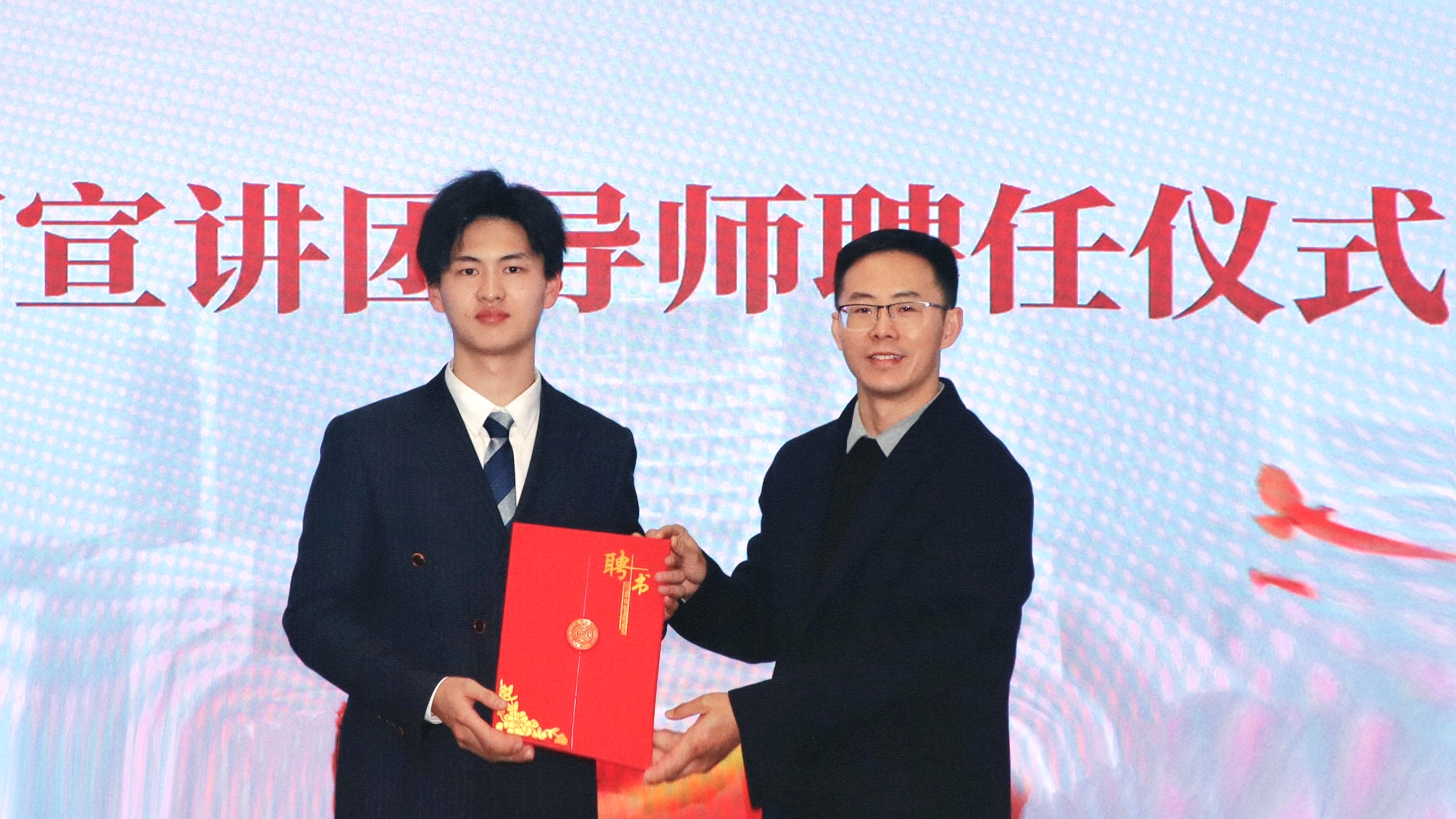 会上还举行了聘任仪式,周照东为商云飞颁发了校外导师聘书,庞利敏为第三期宣讲团导师颁发了聘书,范冰川、蒋婕、申婷和商云飞共同为新一期浙理硕博宣讲团团长和副团长颁发了聘书。