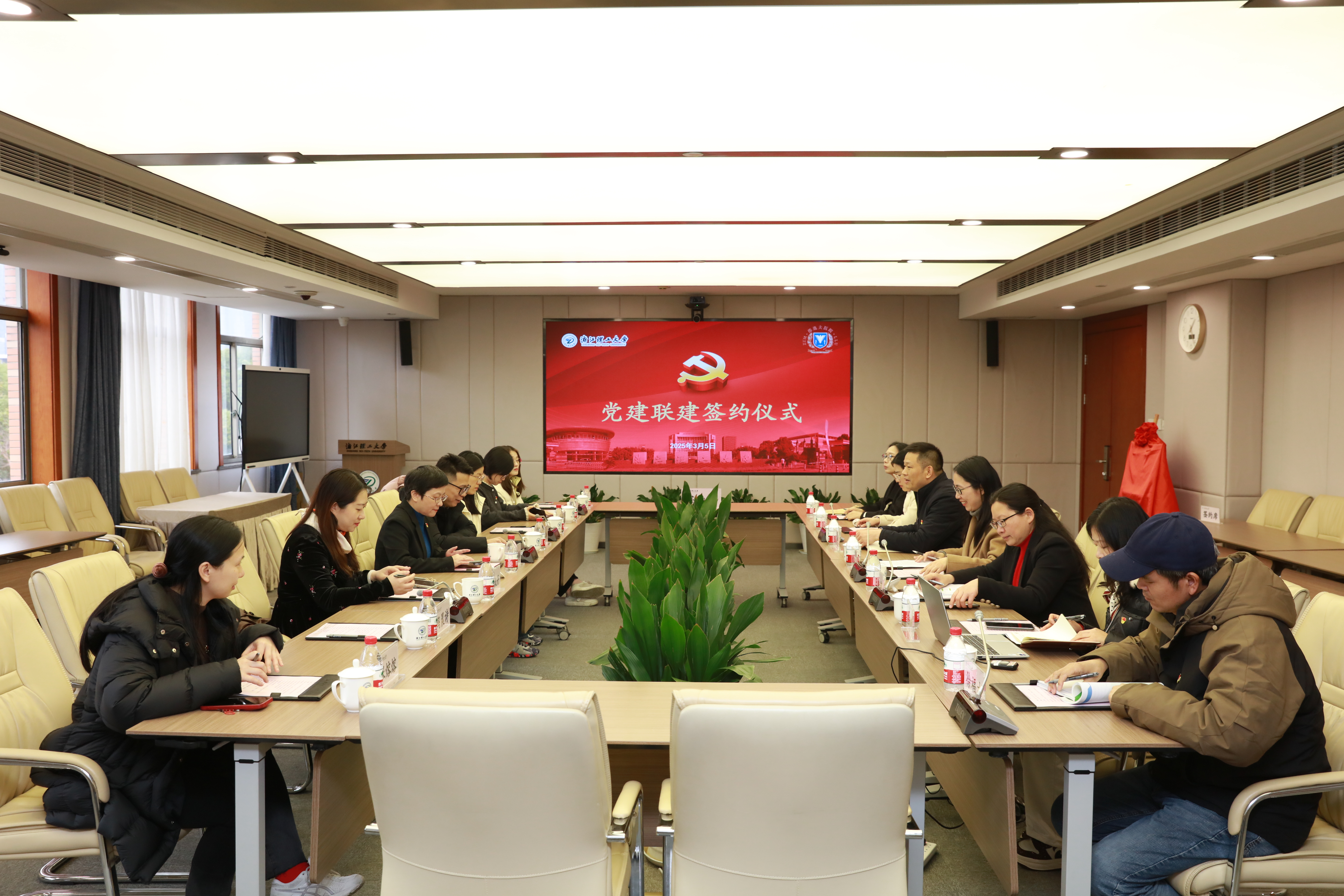 为进一步发挥党建引领优势,深化健康校园建设,持续提升校园医疗保障水平,3月5日下午,公共事务管理处与浙江大学医学院附属邵逸夫医院钱塘院区举行党建联建签约仪式暨健康惠民大型义诊活动。浙江大学医学院附属邵逸夫医院党委委员、钱塘院区党委副书记王家铃,钱塘院区门诊部主任沈益敏,党政办主任助理张议丹,机关党委常务副书记、党委组织部副部长韩晶晶,公共事务管理处处长、党支部书记王雄英等参加签约仪式。活动由副处长伍小龙主持。