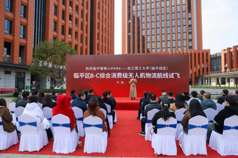 3月6日下午,杭州市首条进入校园的B-C综合消费级无人机物流航线“临平区银泰in PARK-mk官方网站_mk(中国)(临平校区)”试飞活动成功举行。临平区委常委、区政府党组成员、临平新城党工委书记宋宇,市低空专班场景推动组负责人、市交通运输局调控服务处处长周鸣,区交通运输局党委书记、局长叶茂出席活动,学校临平校区管委会办公室主任方平携10余名师生代表参加试飞活动。师生们以“科技使用者”和“创新共建者”的身份,深度融入这场校地智慧化升级的实践探索。