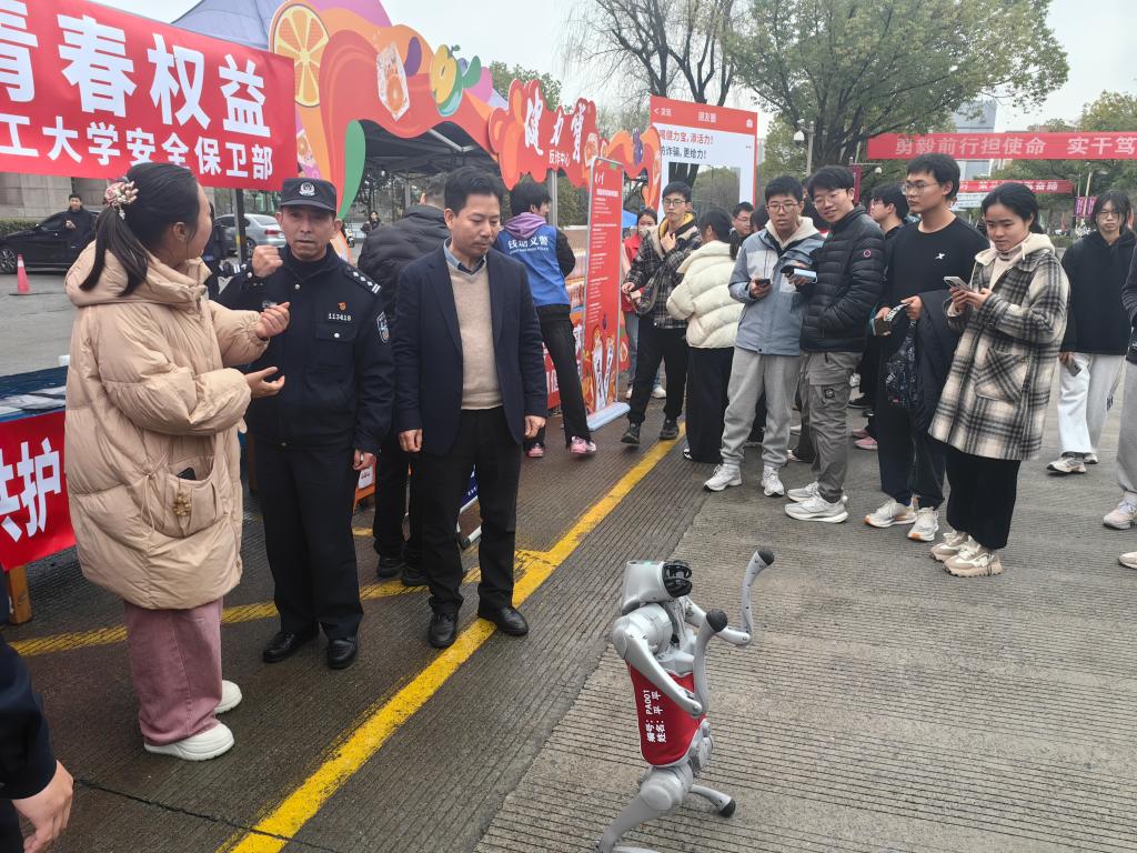 值得关注的是,安全保卫部的一员——智能机器狗平平吸引了众多目光。这只“科技尖兵”不仅能进行反诈语音播报,还能进行各种动态演示。机械工程学院王同学表示:“这种沉浸式体验让原本枯燥的反诈知识变得生动易懂。”
