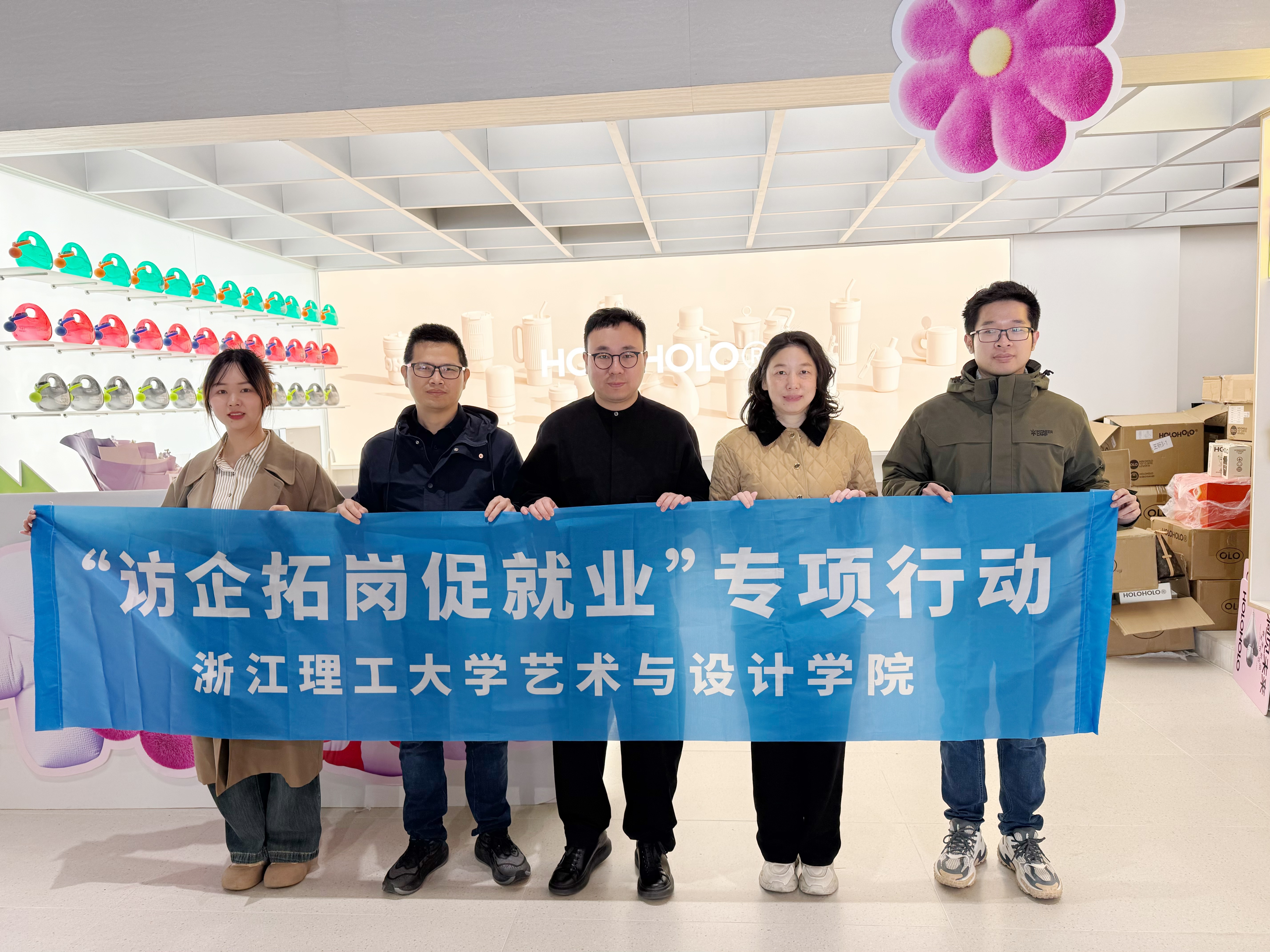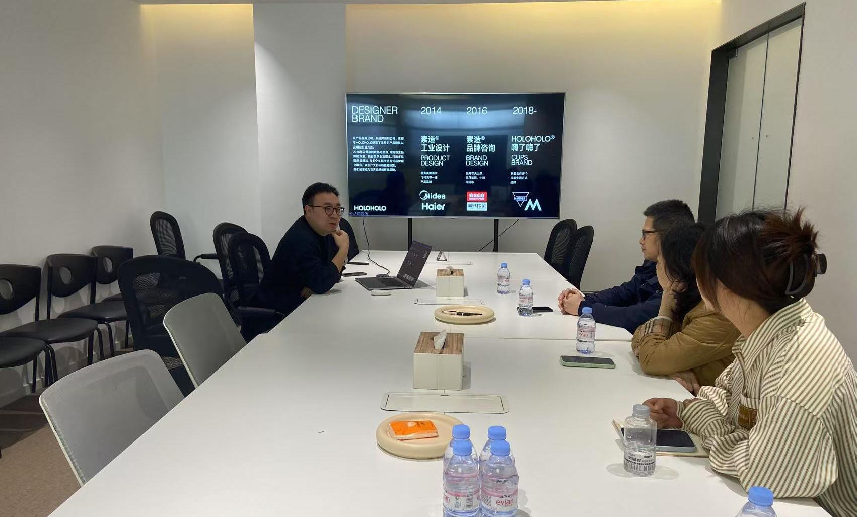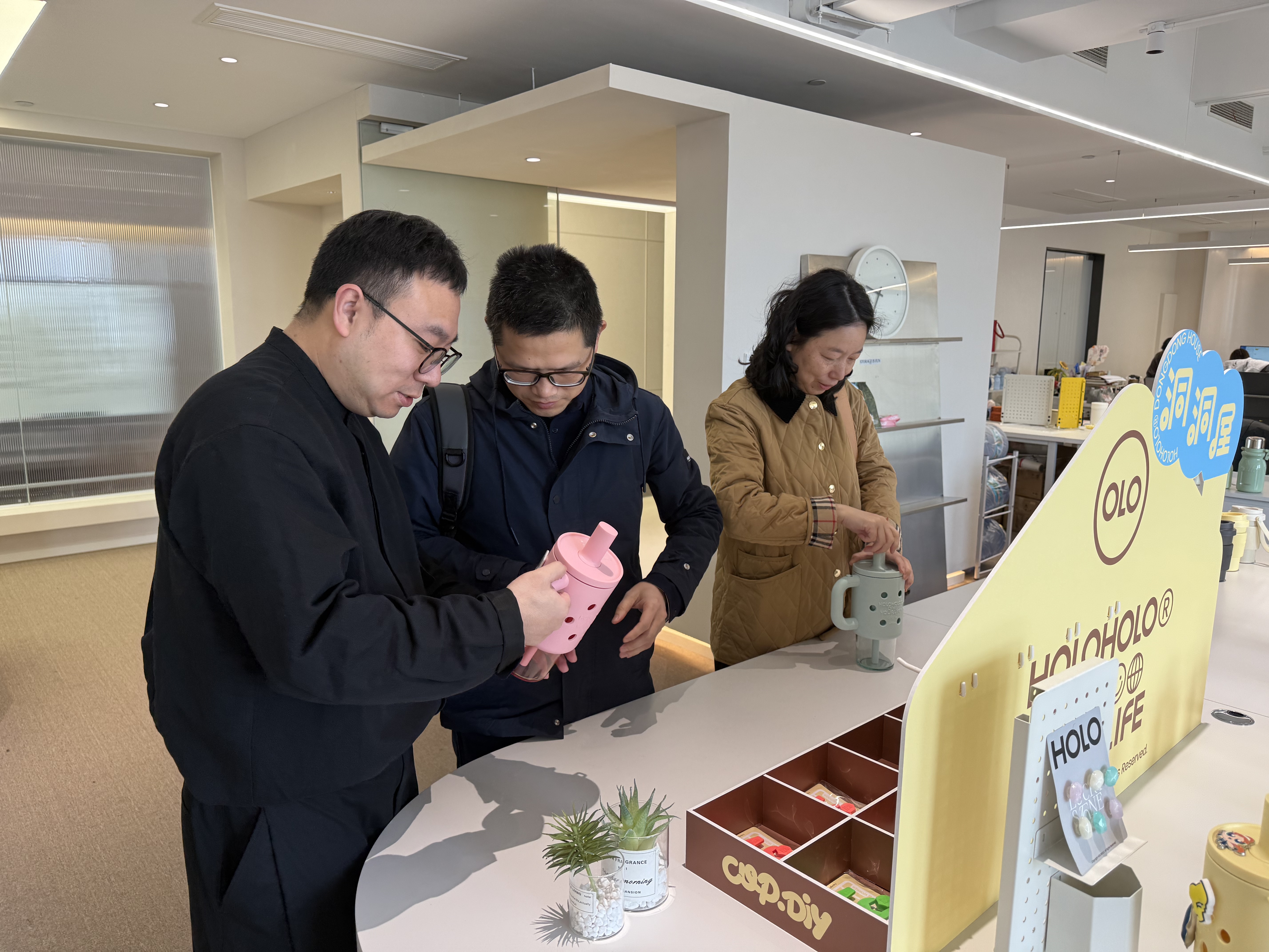 3月21日,艺术与设计学院党委副书记阮财斌、学工办主任陈璐、2021级辅导员方沁怡、马州一行走访了校友企业杭州嗨了嗨了文化创意有限公司,2005级工业设计专业校友、公司总经理麻锐热情接待学院一行。