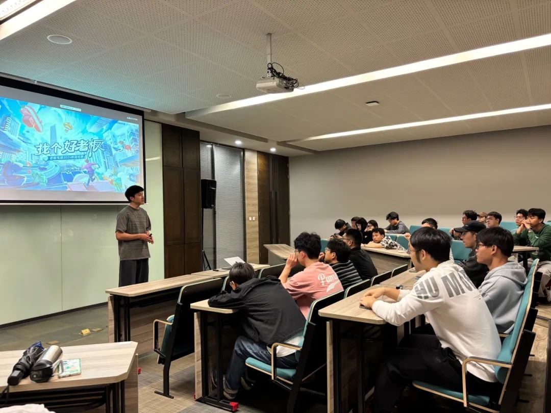 参观结束后,陈毅杰还为同学们带来了题为《HR带你拆解岗位画像》的就业微课,他结合自身工作经历,从专业HR的角度围绕求职准备、岗位选择、面试技巧等环节,分享了宝贵经验:在求职准备时,要领悟任职资格背后的能力要求,挖掘自身匹配性经历;在岗位选择上,要突出自己关键技能与业绩,提炼核心竞争力;在面试过程中,则需要了解面试官的提问意图,注重表达方式和沟通效果。他还结合公司实际,向大家详细介绍了新人培养模式,也对同学们的提问给予了耐心解答,现场氛围活跃。