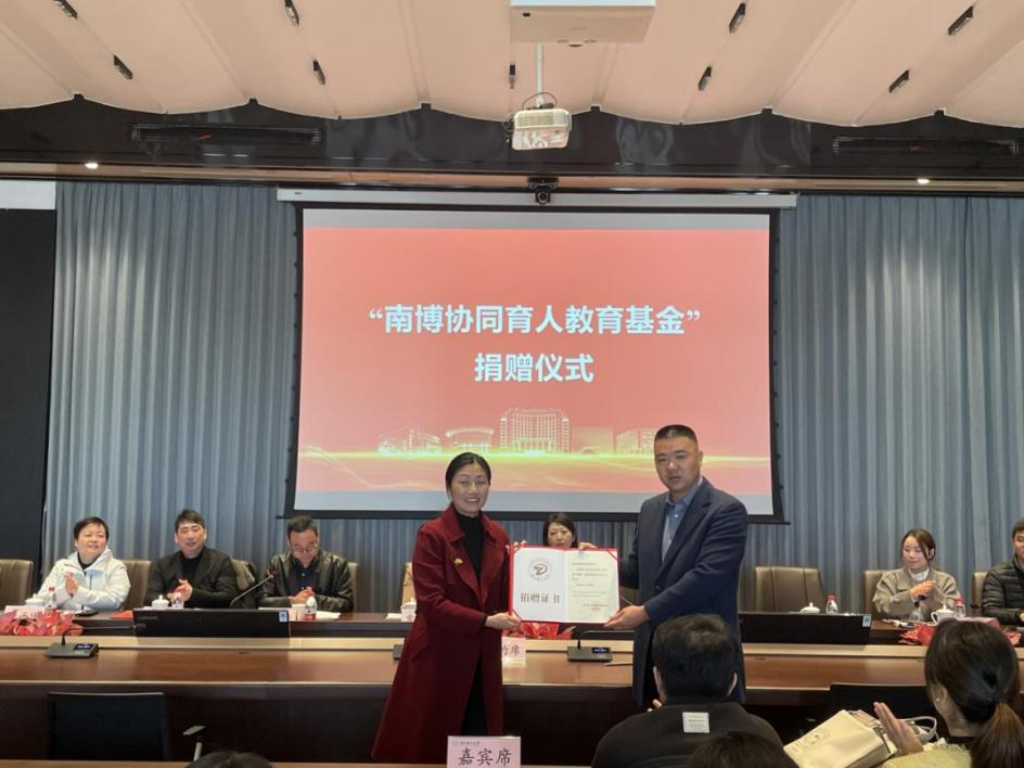 杭州南博装饰材料有限公司常务副总李存忠与艺设学院党委书记吕旻现场签订“南博协同育人教育基金”捐赠协议,该基金主要用于开展会展空间创意设计大赛和临理工作。