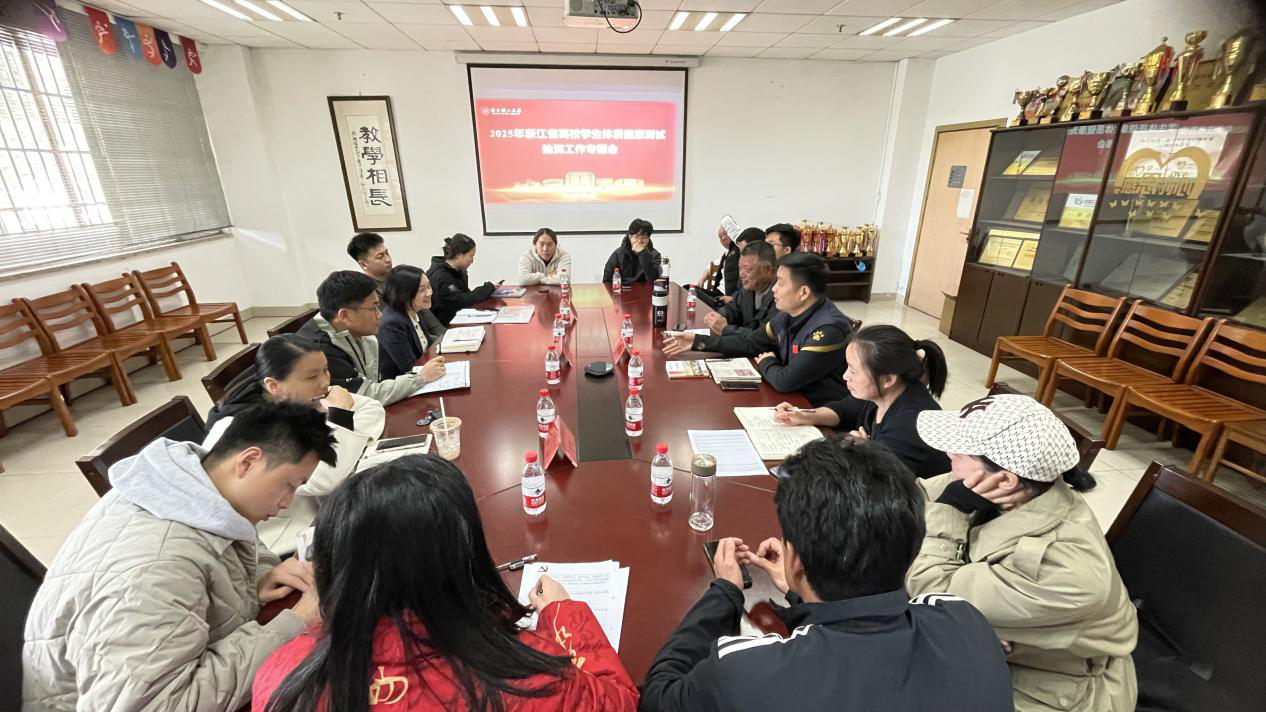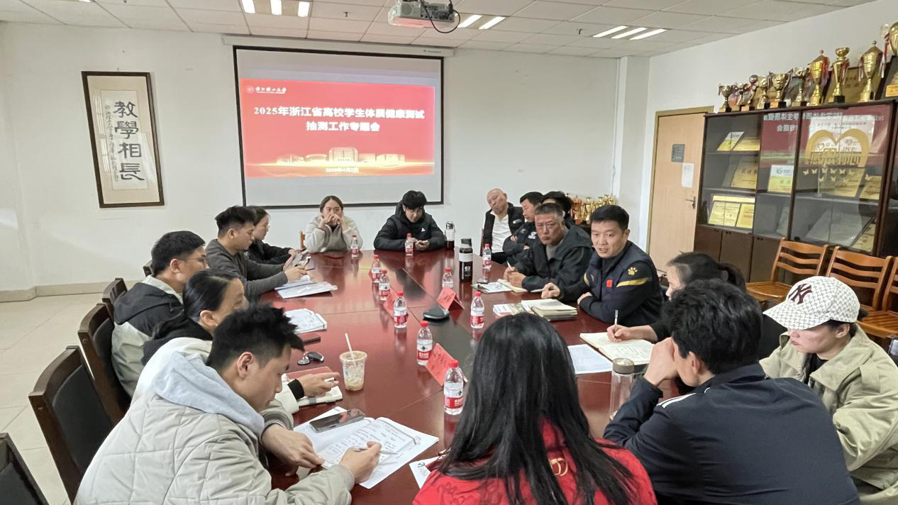 为迎接即将到来的全省体质健康测试抽测工作,4月2日下午,我校组织召开2025年浙江省高校学生体质健康测试抽测工作专题会。体育教研部主任兼党委书记惠悲荷、副主任邹学芝,法学与人文学院党委副书记汪小明,机械工程学院党委副书记陆秋萍,本年度参与抽测工作的学院学生辅导员,体军部部分教师等参加会议。会议采用线上线下相结合的形式,由惠悲荷主持。