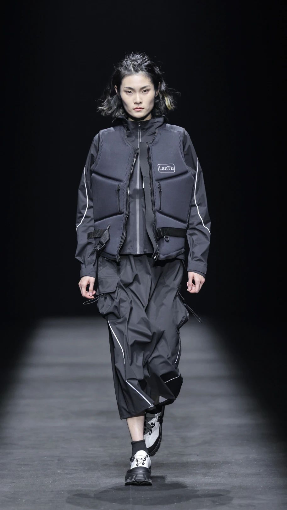 3月24日,由服装学院教师贺华洲设计的先锋大秀,三门首家企业蓝途户外(LANTU)强势登陆中国国际时装周舞台,这场大秀用近50套自主研发的冲锋衣新品,重新定义户外时尚的边界!不仅是一场视觉盛宴,更是一场关于功能与美学、自然与科技的深度对话。