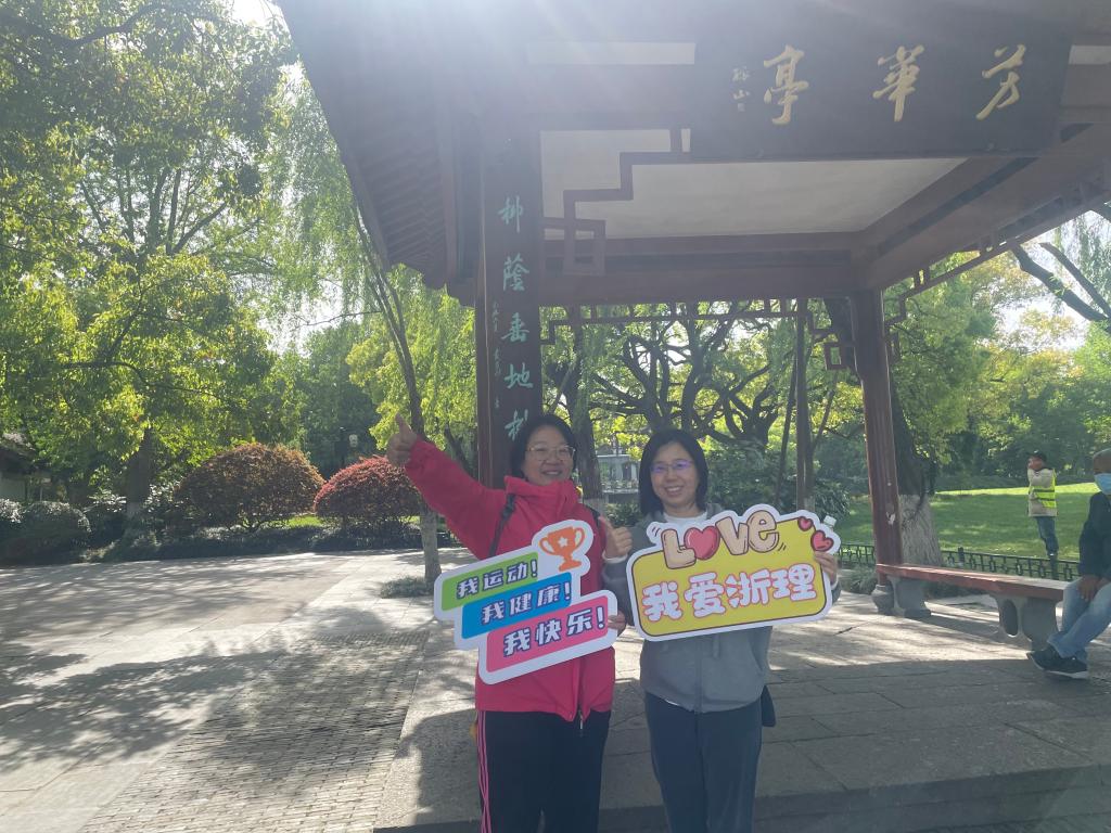 教职工们相约同事或家人,纷纷走出校园。毅行路上,或行走在钱塘江边,或漫步在运河岸旁,或徜徉在西子湖畔,大家卸下平日的压力与疲倦,尽情舒展身心,与大自然亲密接触,重拾满满的正能量。每走到一处打卡驿站,大家都喜悦欢呼,纷纷拍照留下明媚瞬间。