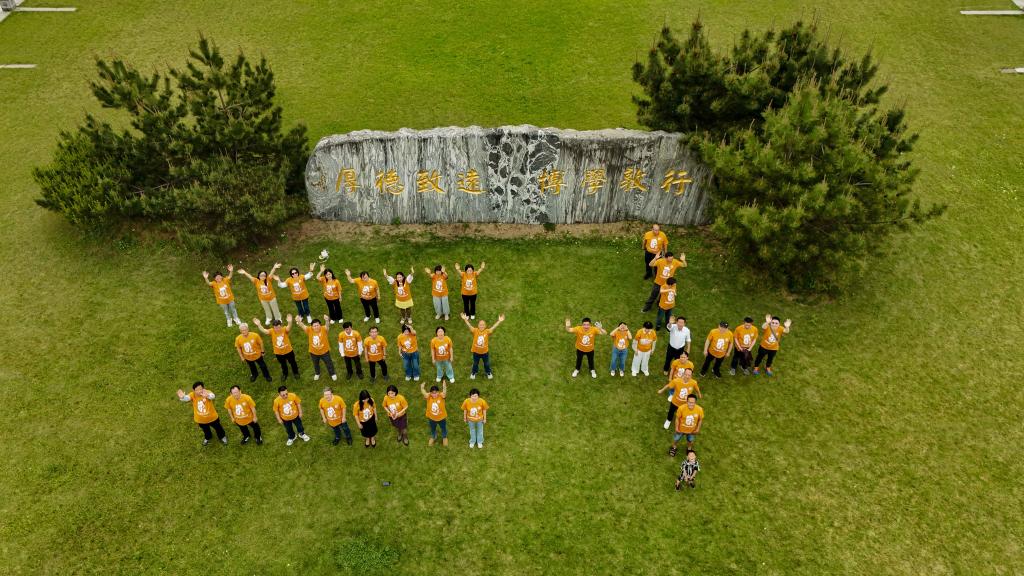 上午10时,校友们抵达下沙校区,在尚+大楼拍摄下集体合影,定格了跨越三十余载的同窗情谊。