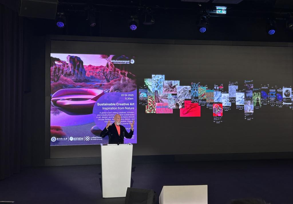 会议于迪拜地标性建筑——未来博物馆(Museum of the Future)隆重开幕。来自全球的专家学者、设计师、艺术家齐聚一堂,共同探讨可持续创意与自然灵感的前沿命题。师生们聆听了Maison Margiela和Viktor & Rolf前全球首席执行官Mr. Giovanni Pungetti、IEREK创始人兼首席执行官& Springer出版社ASTI系列主编Dr. Mourad Amer等国际嘉宾的演讲,通过与迪拜文化与艺术局总干事Hala Badri、意大利驻阿联酋大使Lorenzo Fanara、著名设计师Ross Lovegrove等的现场交流与互动,沉浸式感受创意与科技、艺术与生态的融合表达。