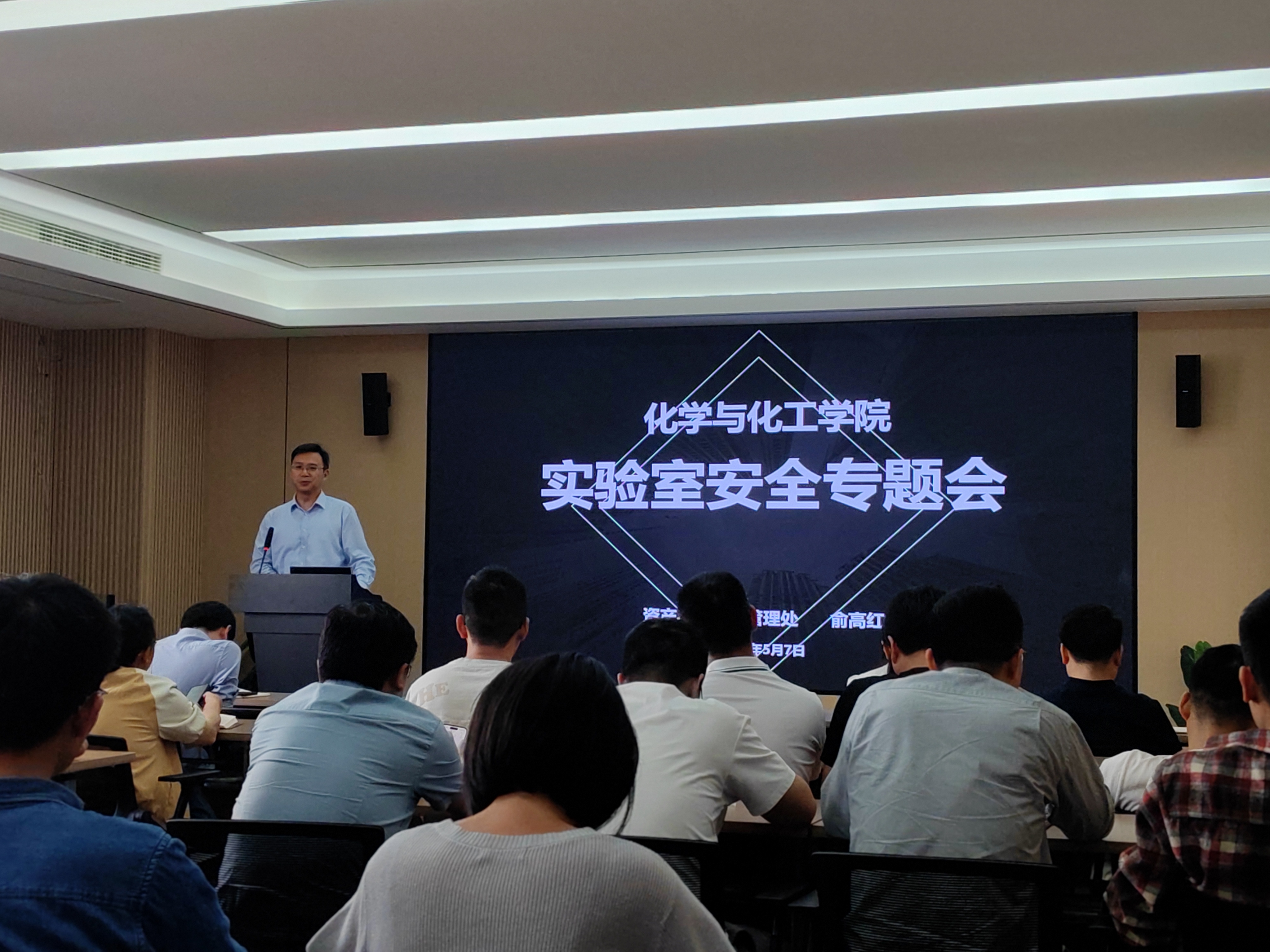 化学与化工学院于5月7日下午在19号楼531报告厅召开实验室安全工作专题会议,校资产与实验室管理处处长俞高红,院党政领导班子,各实验室安全负责人及课题组学生安全员参会,会议由院党委书记施鹏主持。