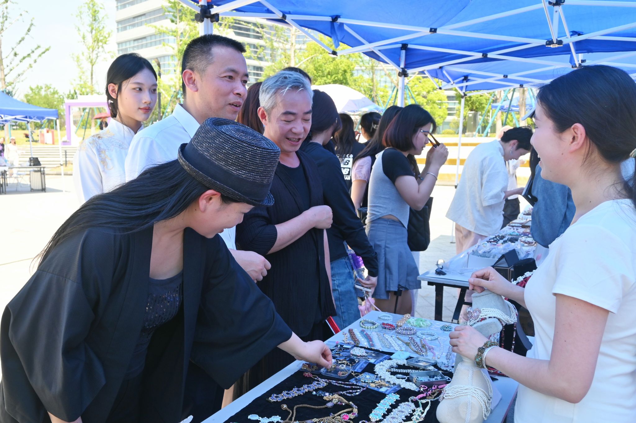 23级服装与服饰设计2班程悦月作为本次创业摊主学生代表,分享了自己在手工创作中的成长历程,她认为,创意的价值在于打破常规,在时尚领域尤其需要勇于探索未知,期待在本次集市中与不同专业的同学交流合作,激发更多灵感。
