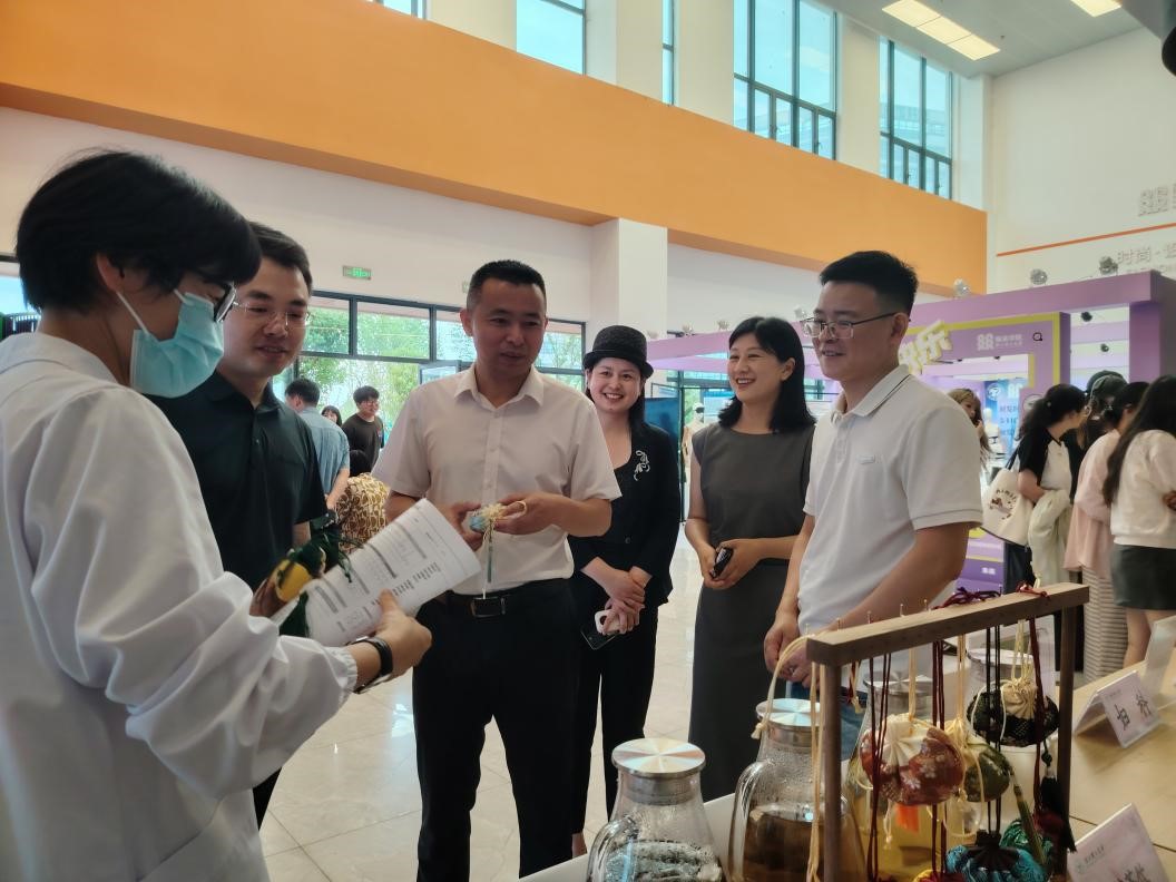 活动现场洋溢着浓厚的节日氛围和文化气息。在传统手工艺体验区,师生党员们不仅生动讲解了端午佩香囊、挂艾草等民俗的由来与寓意,更手把手指导参与者制作粽形香囊和红船状门挂。一针一线间,传统技艺得以传承;一缠一绕中,节日文化焕发新活力。