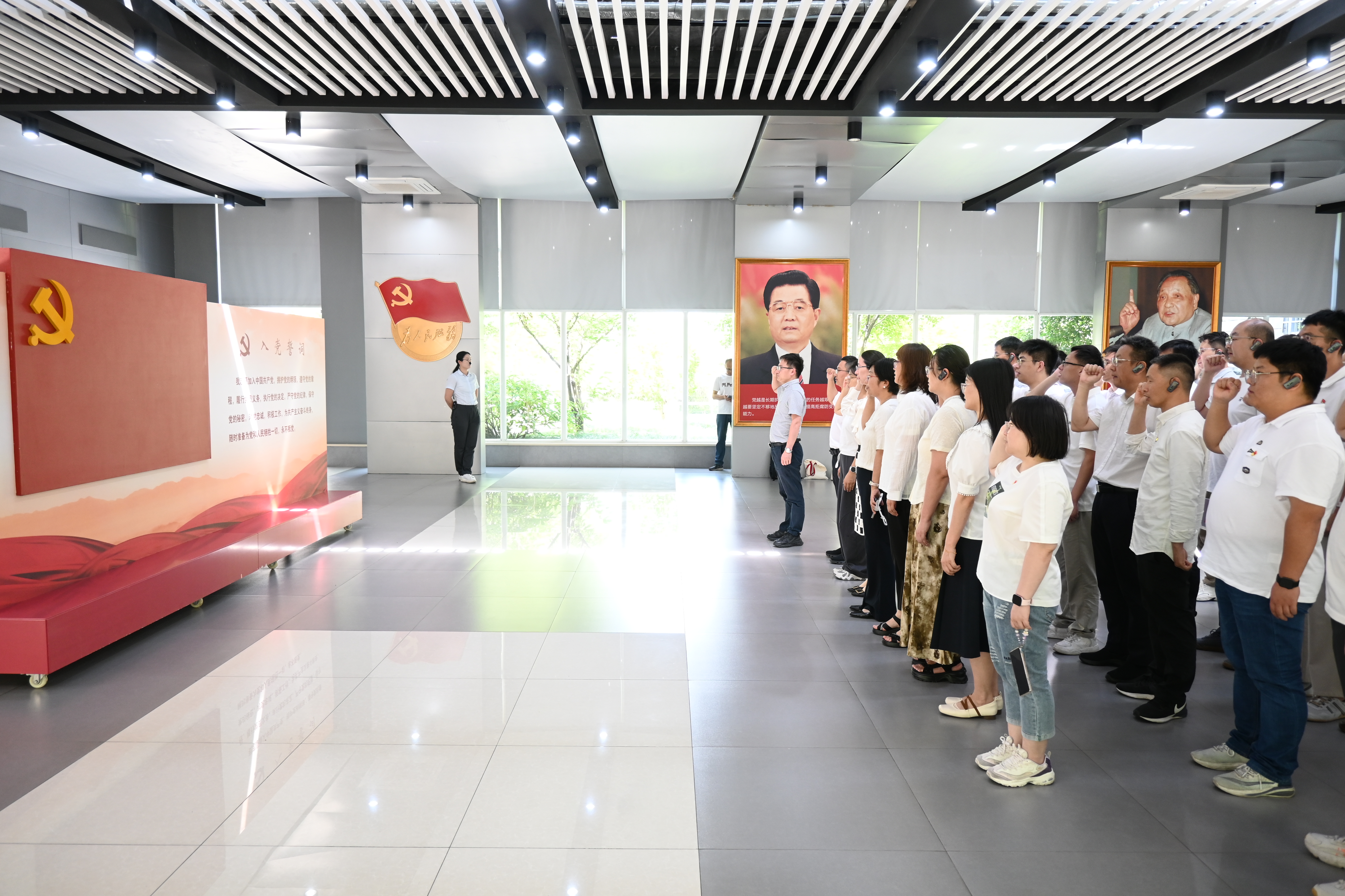 参观伊始,在高分子材料系教工党支部书记陈世昌的带领下,全体党员干部重温入党誓词,牢记初心使命,强化使命担当。