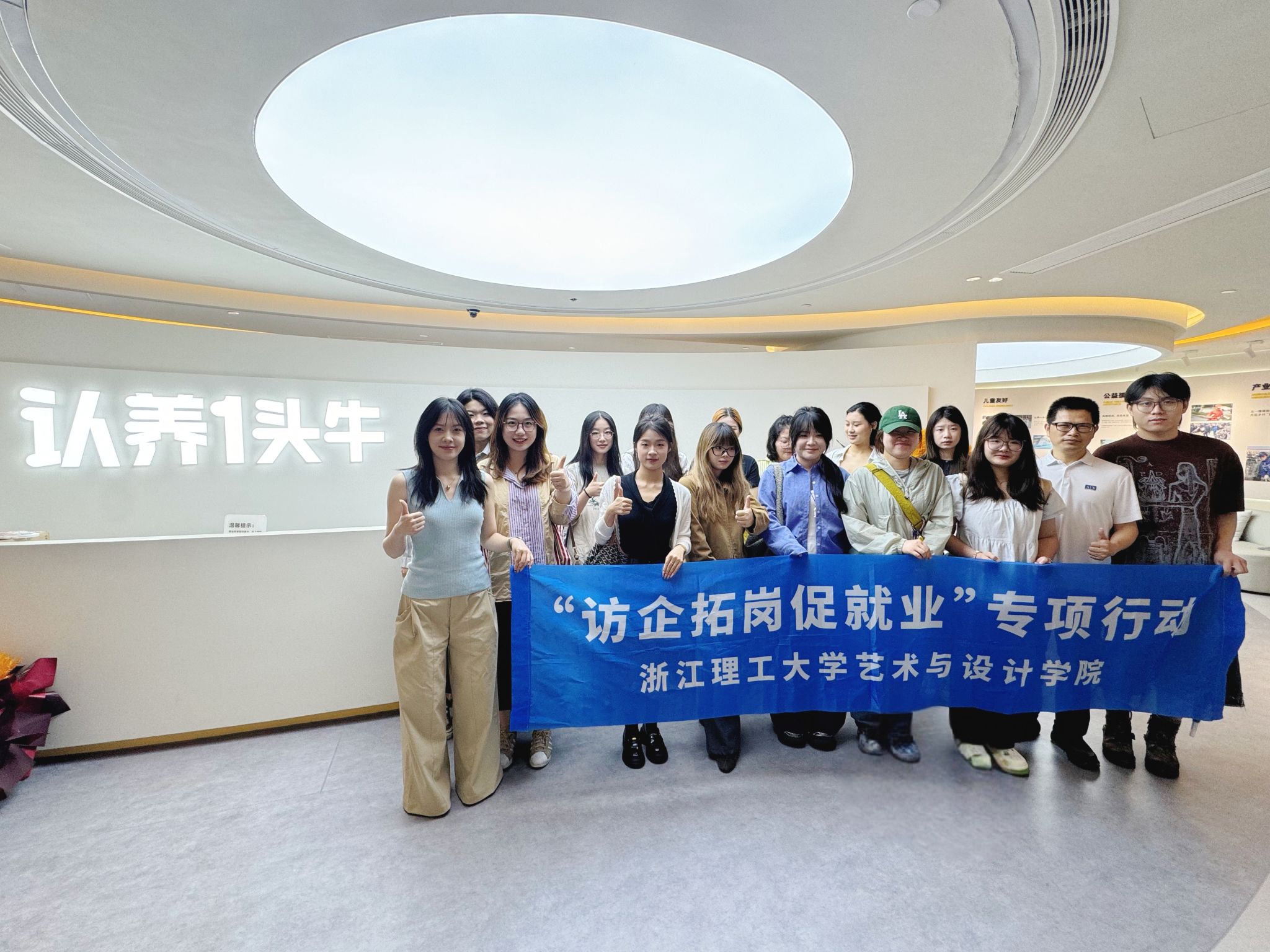学院党委副书记阮财斌,辅导员陈妍吉、李稼桢带领学生一起来到认养一头牛控股集团股份有限公司。在学院校友胡学敏的带领下,阮财斌一行参观了公司展厅,学生们在公司进行了相关应聘工作岗位的面试。
