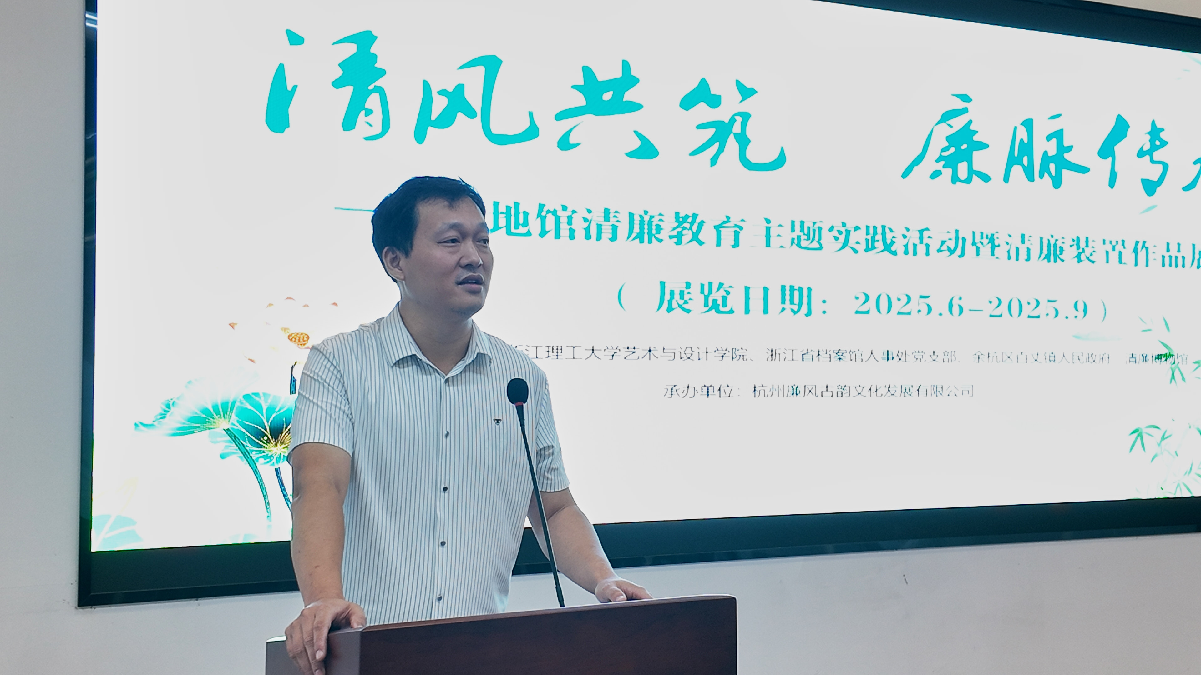 6月13日,“清风共筑·廉脉传承”校地馆清廉教育主题实践活动暨清廉装置作品展在余杭区百丈镇清廉博物馆举行。浙江省档案馆人事处专职副书记、纪委机关书记凌波,百丈镇党委副书记、镇长叶庆平,百丈镇党委委员、纪委书记吴春丽,清廉博物馆馆长金柯,mk官方网站_mk(中国)艺术与设计学院党委副书记阮财斌,数字媒体艺术系教师张小波以及师生代表出席本次活动。