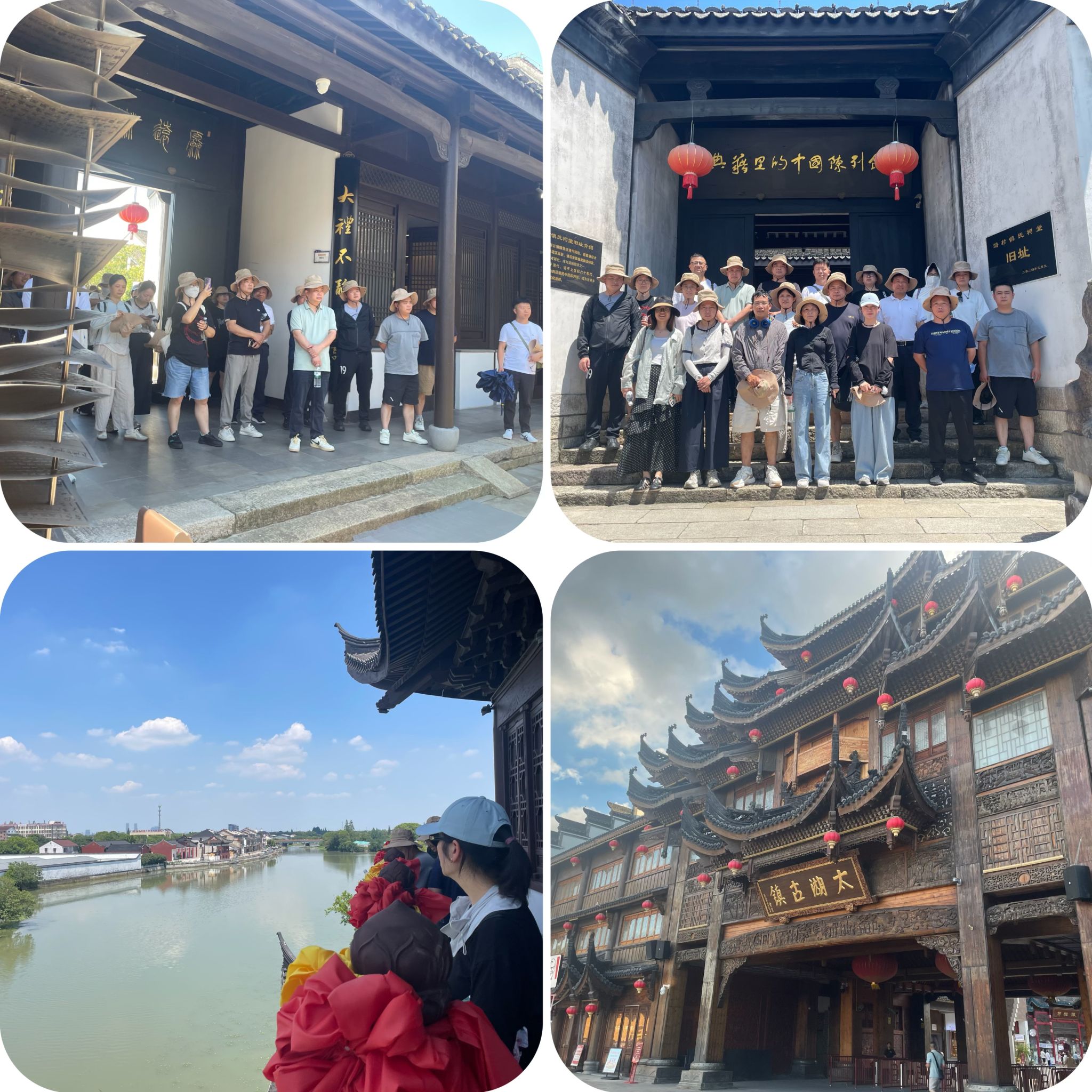 “行遍江南清丽地,人生只合住湖州”。湖州拥有两千多年的悠久历史,文化底蕴深厚。在这里,老师们先后打卡了“双林古镇”“太湖古镇”,参观了“典籍里的中国”陈列馆及“衣裳街历史文化街区”,品味湖州古城的内涵。第一站“双林古镇”,老师们登上文昌阁,打卡“连中三元”美好寓意,寻访国家级重点文保单位“双林三桥”和各类展馆,感受浓郁的书香文化;第二站太湖古镇,大家欣赏了浪漫的烟花秀、震撼人心的打铁花表演和“醉美太湖”沉浸式演出,深深被湖州的魅力所吸引;在“典籍里的中国”陈列馆,老师们不仅体验“在湖州,沉浸典籍,大阅中国”的宏大主题,还通过各类妙趣横生的科技互动工具与先贤对话,了解中华典籍的博大精深。在衣裳街历史文化街区,访问谢安故居旧址、吴兴太守萧琛建立的白蘋馆等历史遗迹,探寻湖州地方特色美食,大家一路有说有笑,身心愉悦。