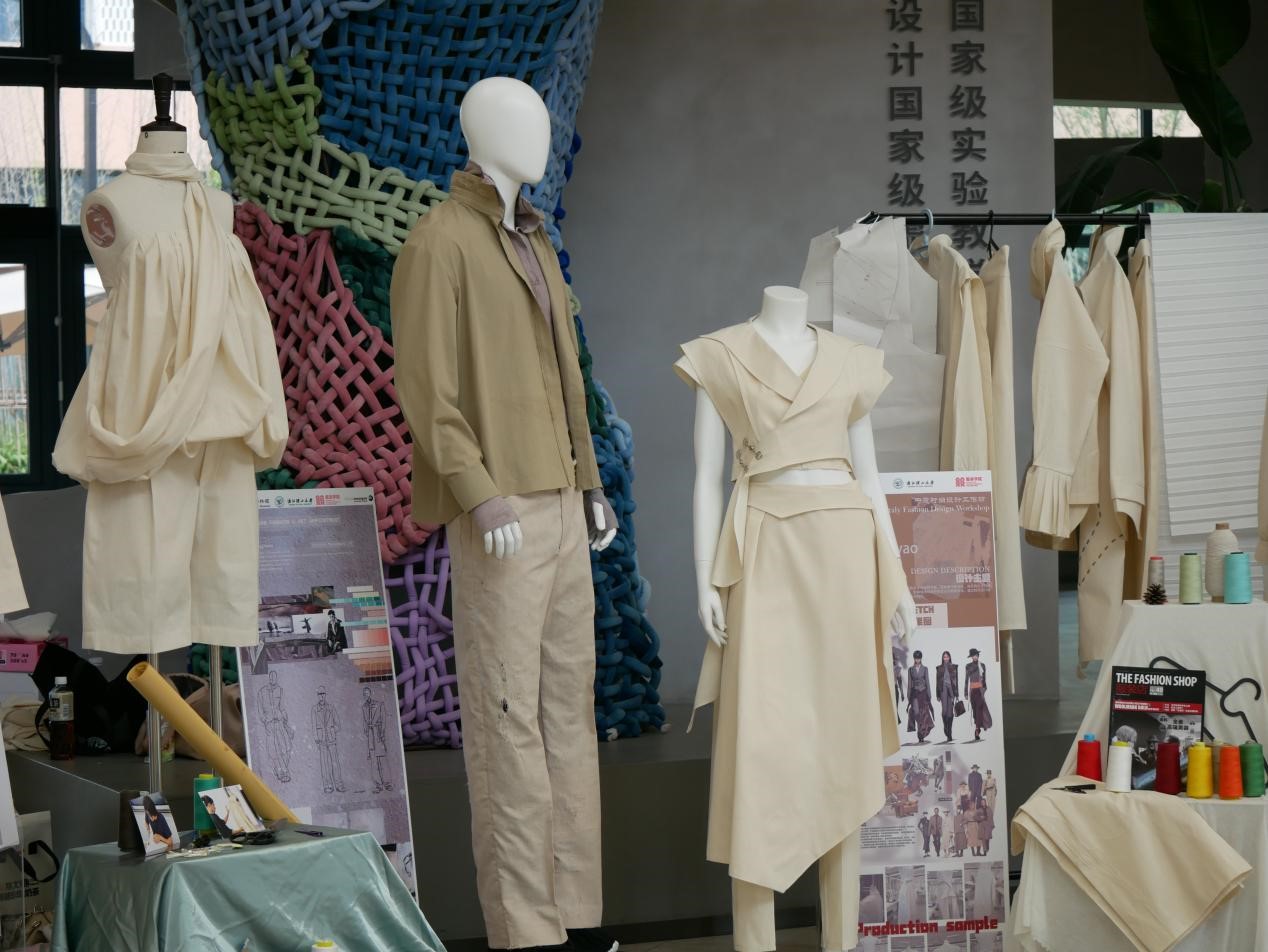 工作坊还组织了企业参访与非遗体验。设计师们走访了INXX、伊芙丽等品牌,学习传统文化与潮流设计的融合实践,并沉浸式体验蓝染技艺,感受非遗工艺的匠心智慧。在设计创作环节,中意团队通过立体剪裁、面料实验等协作,突破文化差异,最终呈现了五组融合东西方美学的时尚作品。