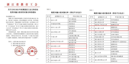 近日,浙江教育工会发布《关于公布2025年直属基层工会文体活动优秀兴趣小组培育对象名单的通知》,学校4个教职工协会入选“浙江省直属基层工会教职工文体活动优秀兴趣小组”,其中篮球协会、足球协会入选银质兴趣小组,瑜伽协会、羽毛球协会入选铜质兴趣小组。