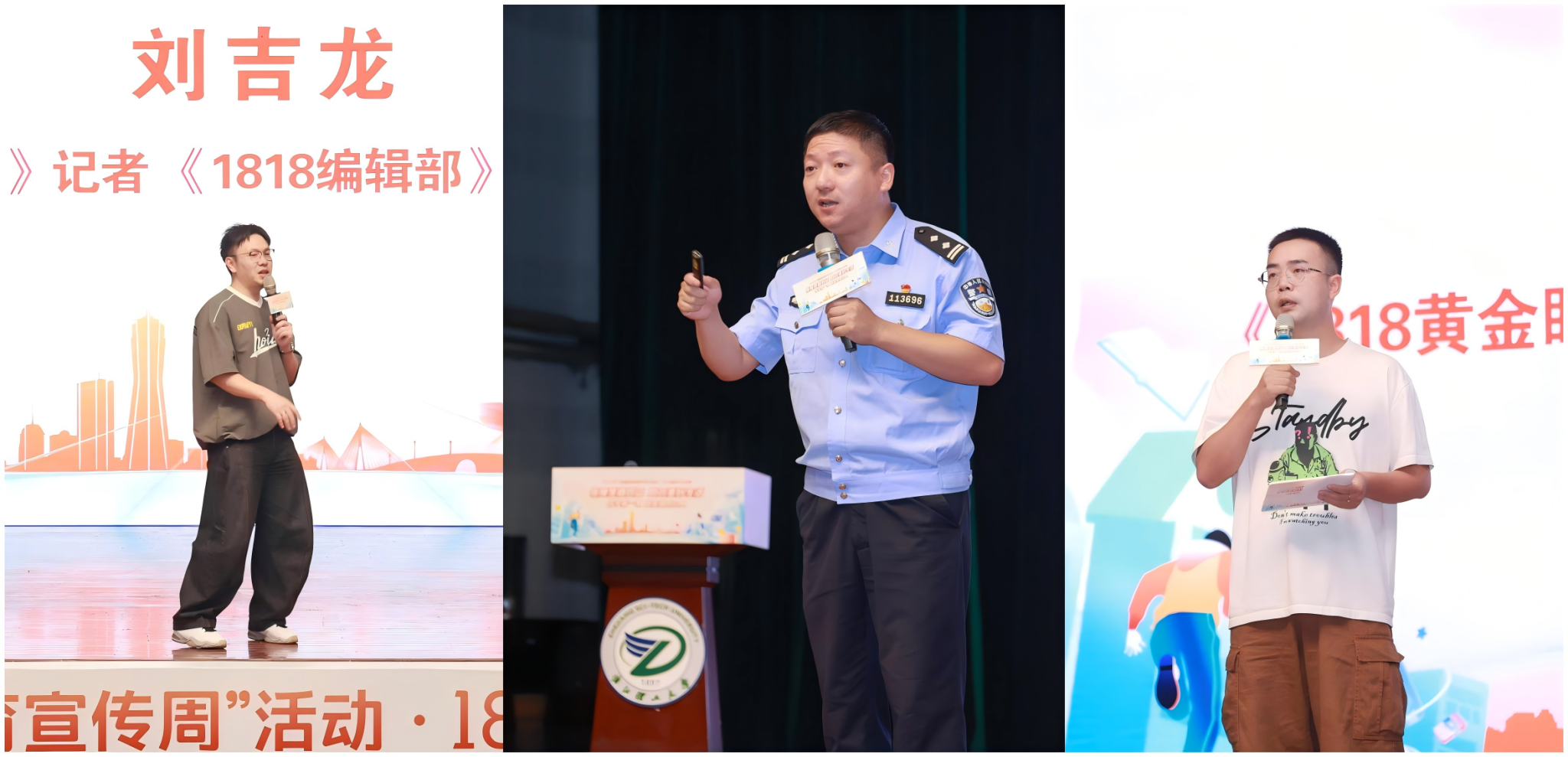 活动现场举行了2025年“金融教育宣传周”启动仪式。《1818黄金眼》记者刘吉龙、卢宝祥、陈玉脉以及杭州市公安局金牌反诈宣讲师游凌飞分别登台,结合真实案例和媒体经验,为现场同学带来生动实用的反诈知识分享。游凌飞警官更以“反诈快板”等创新形式开展互动宣讲,现场气氛热烈。在七大金融机构联合开展的互动问答环节,同学们踊跃参与反诈知识竞答,在轻松氛围中强化了金融风险防范意识。