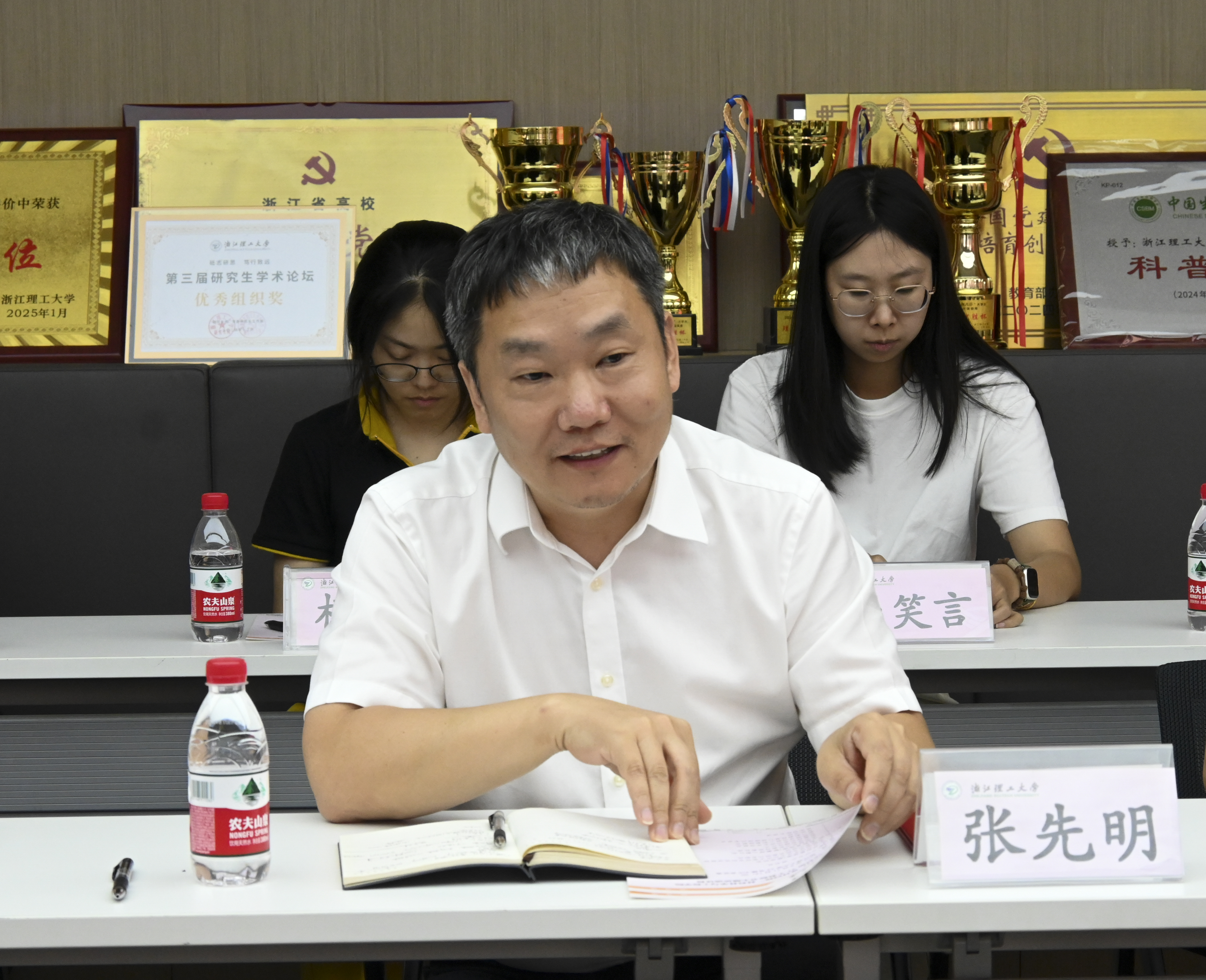 在“材料赞扬您”表彰环节,学院对2025年度在党务工作、教育教学、科研创新等方面取得突出成绩的教师代表予以表彰。仰滢、张先明为获奖教师代表献花,感谢他们为学院发展作出的卓越贡献。
