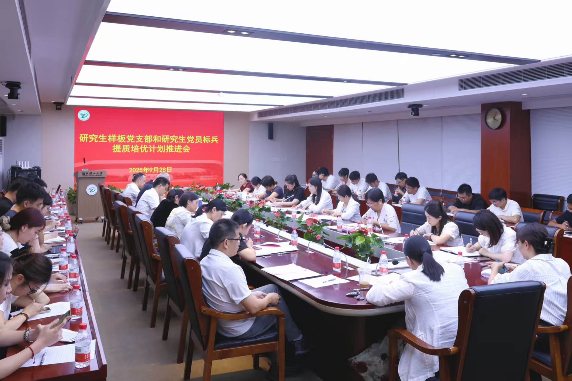 各研究生培养学院学生工作负责人、研究生党建工作负责老师、2025年校级立项提质培优计划研究生样板党支部的支部书记、研究生党员标兵参加了会议。