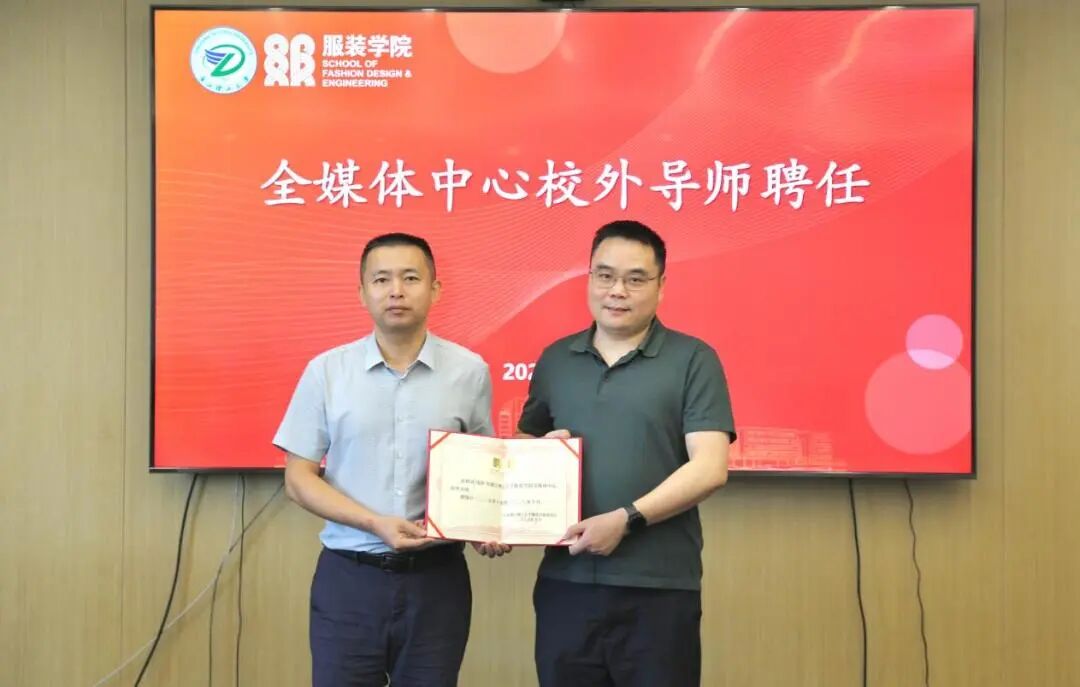 随后,吴跃峰为钱锋颁发“服装学院全媒体中心校外导师”聘书。