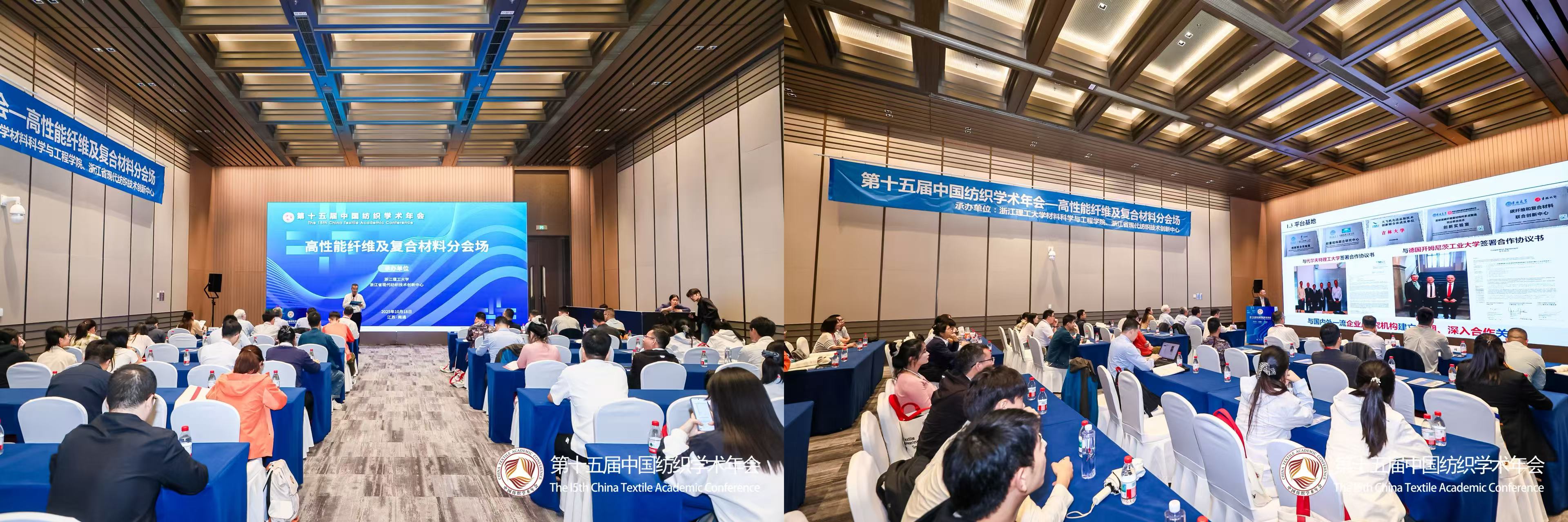 2025年10月17—19日,由中国纺织工程学会主办的第十五届中国纺织学术年会在南通举行。mk官方网站_mk(中国)材料科学与工程学院和浙江省现代纺织技术创新中心共同承办“高性能纤维及复合材料”分会场。来自相关高校与行业企业的专家学者等两百余人参加。会议上半场和下半场分别由mk官方网站_mk(中国)副校长姚菊明教授和材料科学与工程学院院长张先明教授主持。