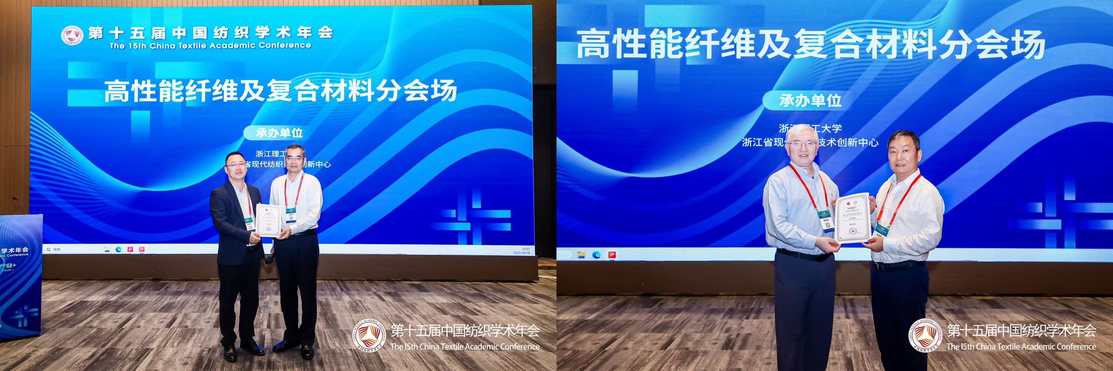 与会专家学者围绕高性能纤维及复合材料领域的最新进展、关键技术挑战与未来发展方向进行了深入探讨,现场互动频繁,思维碰撞不断。会议期间,主持人向各位主讲嘉宾颁发了报告证书。本次会议为领域内学者构建了高质量的交流平台,有效促进了学术创新与科研合作。