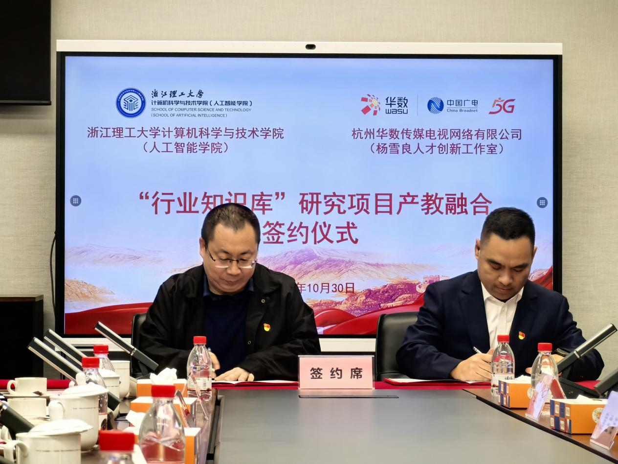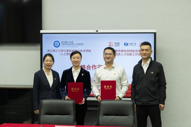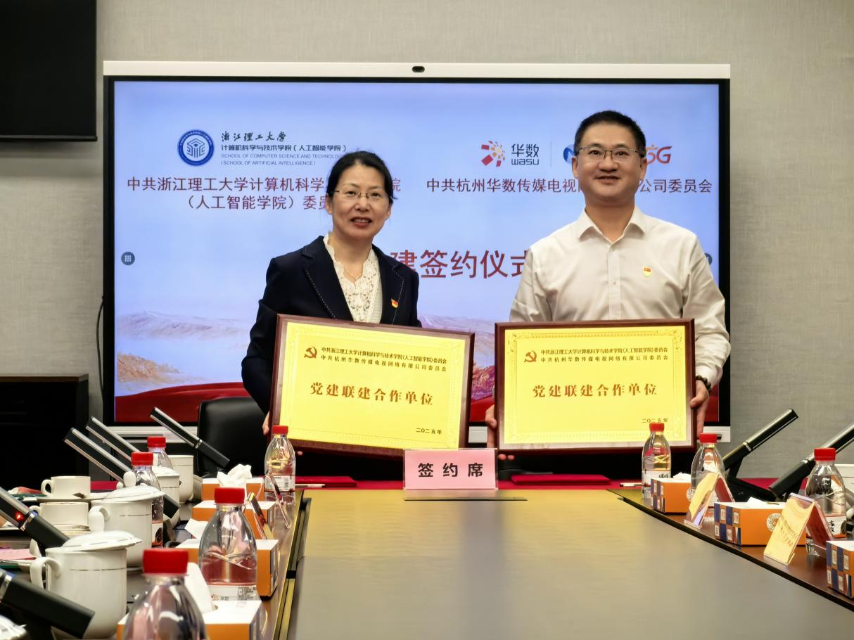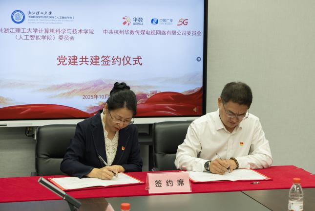 10月30日,mk官方网站_mk(中国)计算机科学与技术学院(人工智能学院)与华数传媒网络有限公司临平分公司在华数产业园举行党建共同体签约仪式暨校企战略合作签约会。华数传媒控股股份有限公司党委副书记、总裁沈子强,临平华数党委书记、执行董事、总经理印天石,党委副书记黄兰洁,党委委员胡佳,财务总监李丹,杨雪良工作室负责人杨雪良,计算机科学与技术学院(人工智能学院)党委书记黄黎,副院长潜睿睿,党委副书记朱敏,学术副院长相东明,专职组织员沈晓斐,青年教师代表马汉杰、张宇等出席活动。