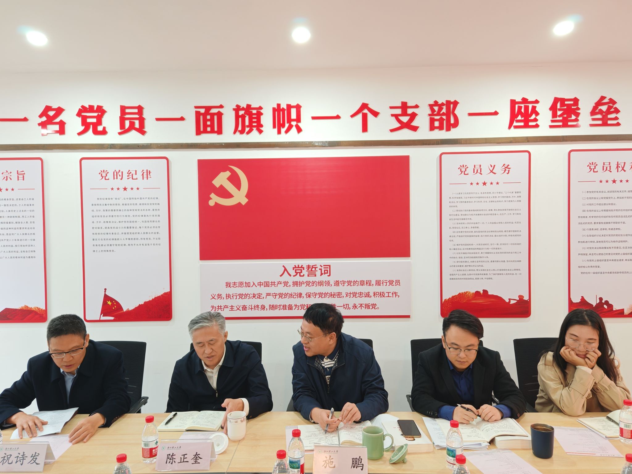 施鹏传达了《习近平谈治国理政》第五卷出版座谈会精神,围绕“坚持教育科技人才一体推进,实现学院高质量发展”作重点发言,并结合学院实际,从强化党建引领、优化学科布局、深化教育教学改革、做好有组织科研等方面交流心得体会。院长祝诗发围绕“深刻把握一体化推进战略意义,加强学科建设”作主题发言。他表示,学院要更加注重科技创新、教育发展和人才培养的相互支撑、统筹推进,营造良好的科研生态,促进学科间协同发展,深化师资引育机制建设,努力形成“1+1+1>3”的效果,力争在博士点申报等标志性成果上实现突破,以扎实作风推进全面高质量发展。