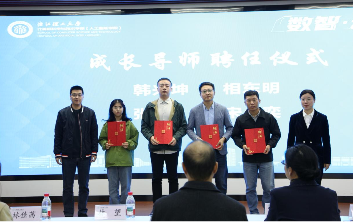 现场还举行了“成长导师聘任仪式”。林望、潜睿睿为企业代表韩兴坤、青年教师代表相东明、朋辈导师代表张涛、宋心奕颁发聘书。