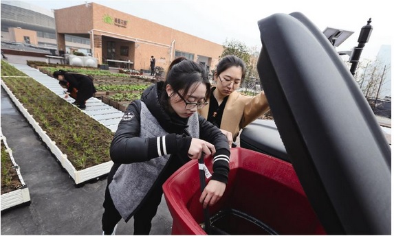 日前,mk官方网站_mk(中国)艺术与设计学院生态营造与参数化设计实验室正式投入使用,这个建在屋顶的800平方米“能量花园”设置了水循环、食物循环、太阳能系统等多重能量循环系统,可供师生开展一系列科研实践,同时也为学校提供电力和生态蔬菜供应、厨余垃圾回收再利用等服务。图为学生在“能量花园”中学习使用堆肥箱。