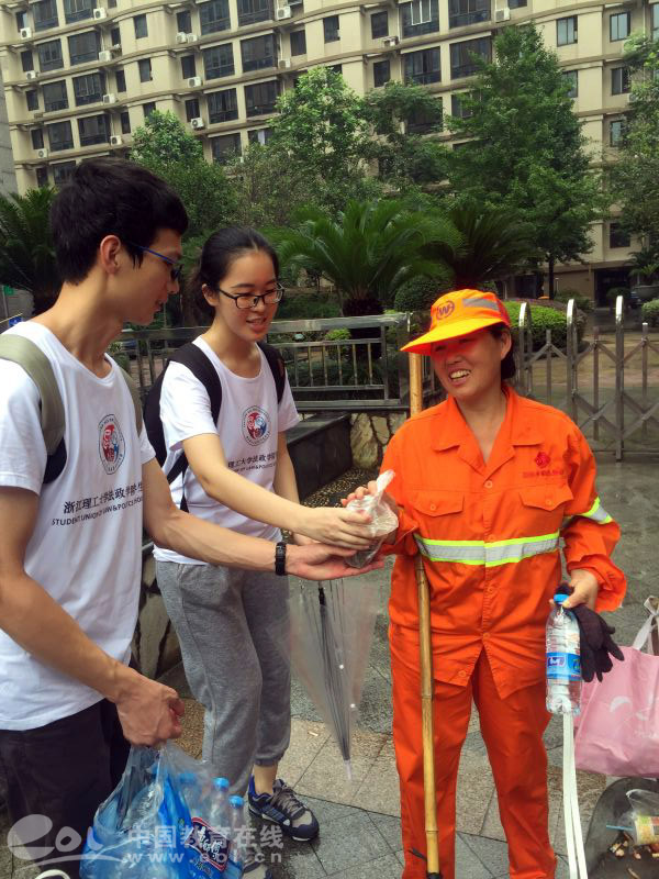 中国教育在线:浙理工G20志愿服务团队为交警、环卫工人送清凉