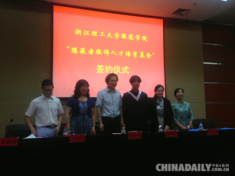 6月12日上午,服装学院在行政楼二楼报告厅举办了 “隐蔽者服饰人才培育基金”签约仪式。这是我校第一个以在校生成功自主创业品牌设立的人才培育基金。