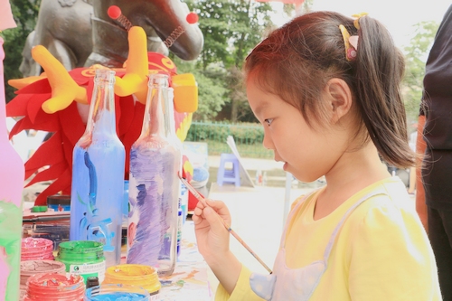 活动现场,利用废旧的瓶盖、酒瓶改造的艺术品让不少市民驻足。在学生们的鼓励下,市民利用酒瓶等材料进行现场创作,体会其中的乐趣,并表示将在生活中在细节中参与水环保,而不局限于以往的简单节水。