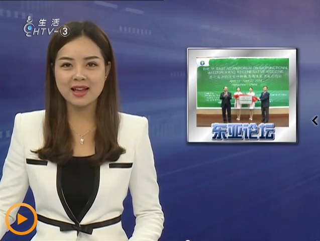 4月26日,杭州电视台三套报道了在我校举行的第一届功能性生物材料与再生医学东亚论坛,来自韩国、日本、西班牙、台湾等国家和地区的百余名专家、学者参加了会议,共同探讨功能性生物材料与再生医学的未来发展。