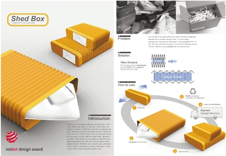 就是这个女生设计的物流快递盒创新作品《Shed box(可伸缩的快递盒)》,日前获得了2013年德国“红点概念设计奖”。10月25日,红点颁奖礼将在新加坡红点博物馆举行,届时她将前往领奖。