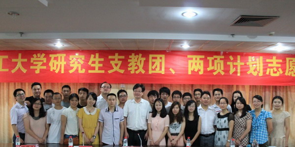 西部计划志愿者代表殷士强和研究生支教团志愿者代表储霞在会上用真挚的语言表达了自己去西部、去基层服务的渴望和信心,对一直以来给予志愿者们帮助和鼓励的领导、老师们表示了真心的感谢。他们同时表示,将尽己所能,发挥所长,将个人的理想与当地发展相结合,勤于学习,甘于奉献,善于创造,努力为当地各项事业的发展贡献自身的力量。