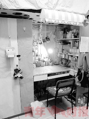 “没错,我就是依照着露天咖啡店的样式设计的。”关婷婷,寝室的主人之一,活泼可爱的一女生。“军训的时候,看到一本杂志上刚好有一张露天咖啡店的布局图,我就心痒想把寝室进行一番改造。没想到,同寝室的其他同学都同意了。”